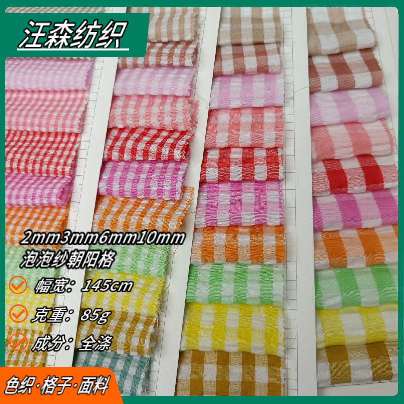 2mm3mm6mm10mm不同间距全涤色织泡泡纱朝阳格子面料裙装布料布匹