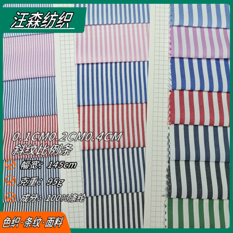0.1CM0.2CM0.4CM斜纹条纹布全涤斜纹比例条子面料衬衫里布料布匹
