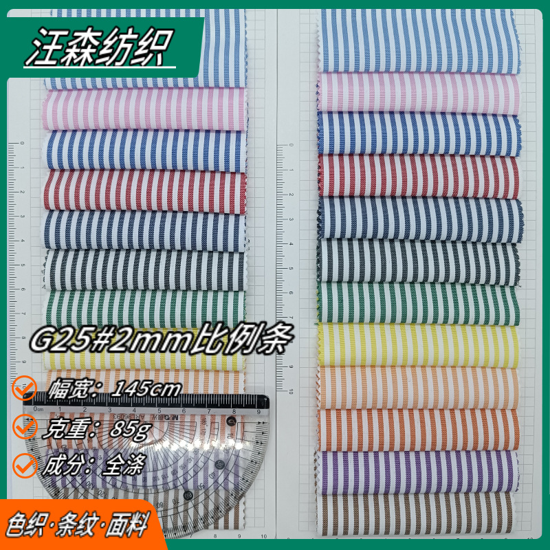 高品质全涤0.2厘米0.3厘米条纹布料色织棉感比例条子衬衫裤子面料