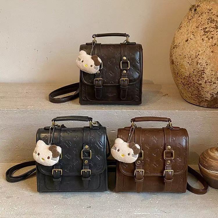 韩版小众设计KT猫双肩包包翻盖单肩手提包豹纹迷你可爱少女小书包