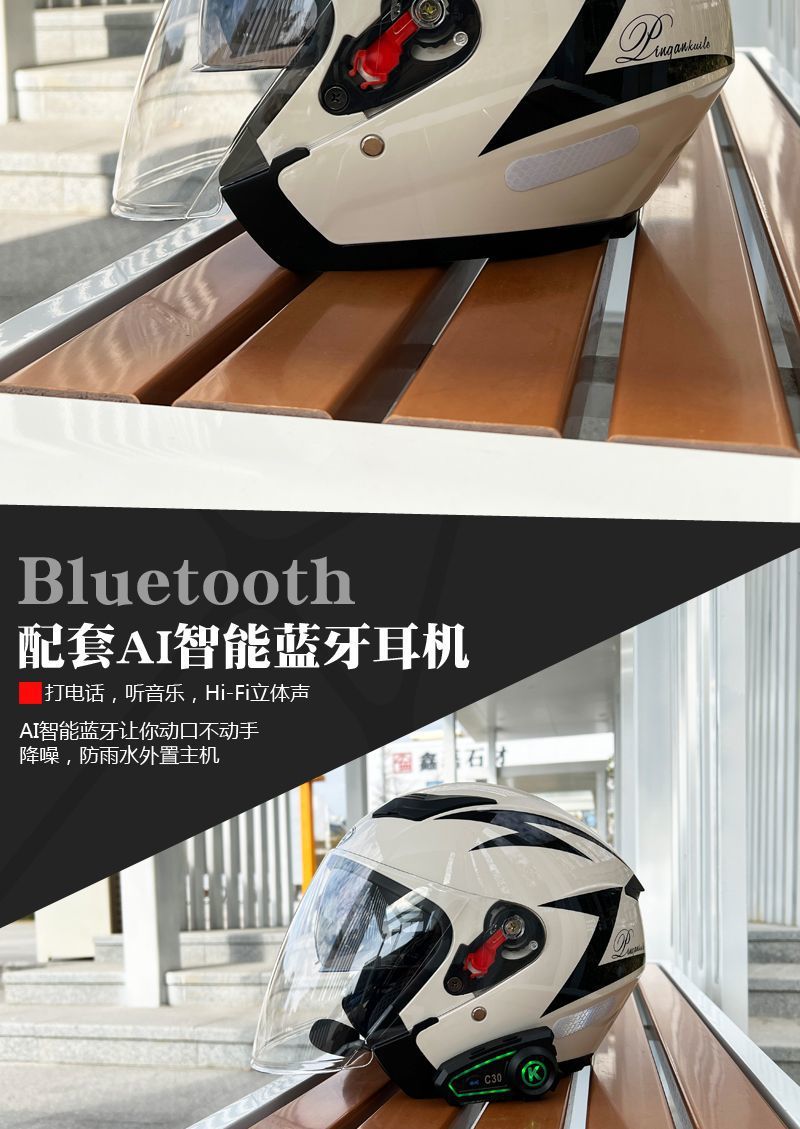 双镜片智能蓝牙头盔男女四季通用四分之三半盔电动摩托车
