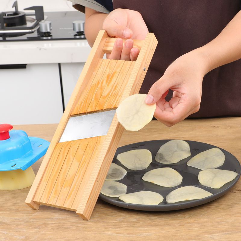 ポテトスライサー、ステンレス製フライドポテトスライサー、ポテトスライサー、キュウリ、多機能野菜カッター、木製おろし器