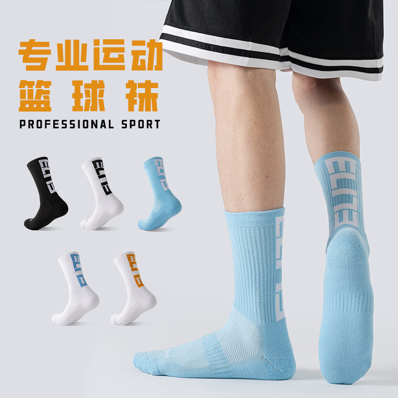 工場リアルバスケットボールソックスメンズミディアム丈タオルソックス厚みのある防汗滑り止めエリートスポーツトレーニングソリッドカラーソックス