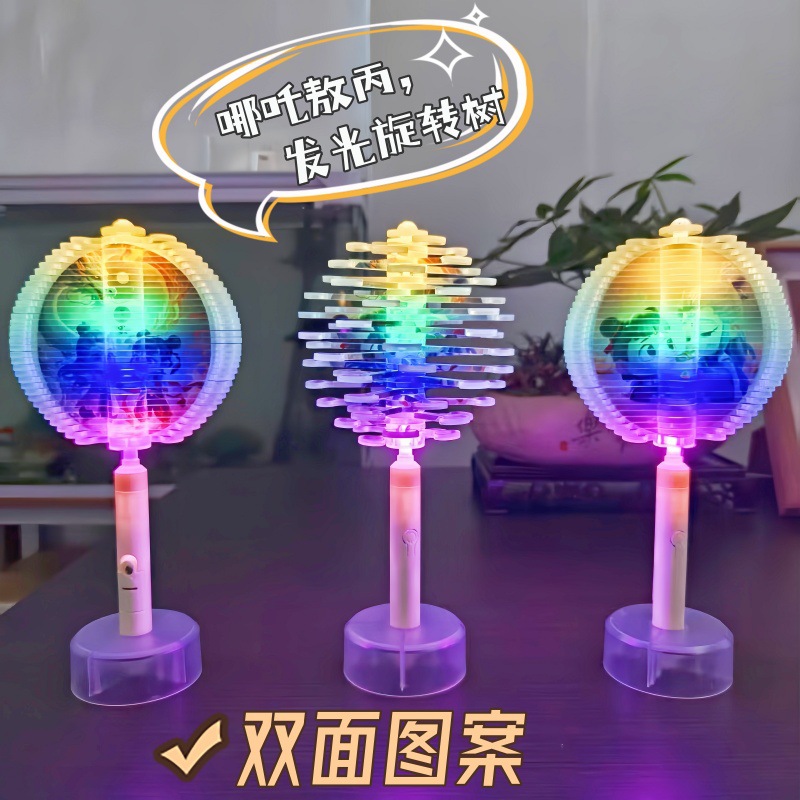 新款哪吒卡通发光旋转树益智旋转棒棒糖川剧变脸谱解压玩具螺旋树