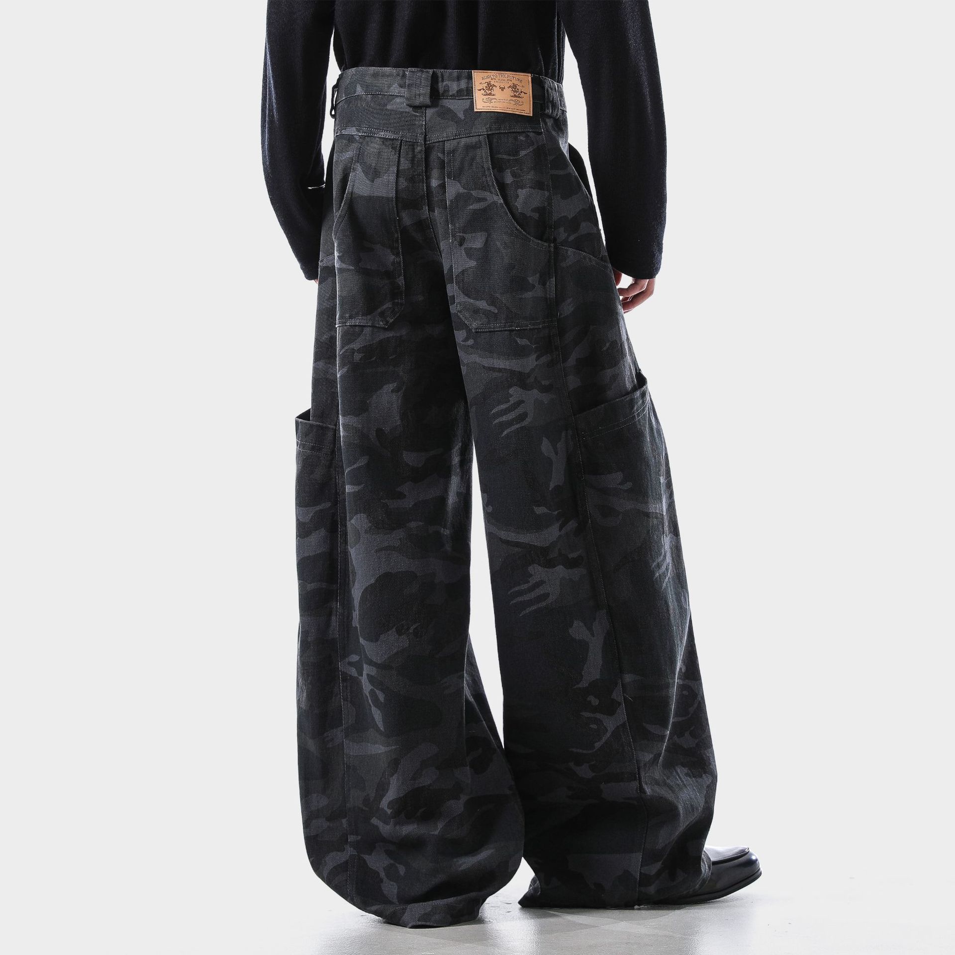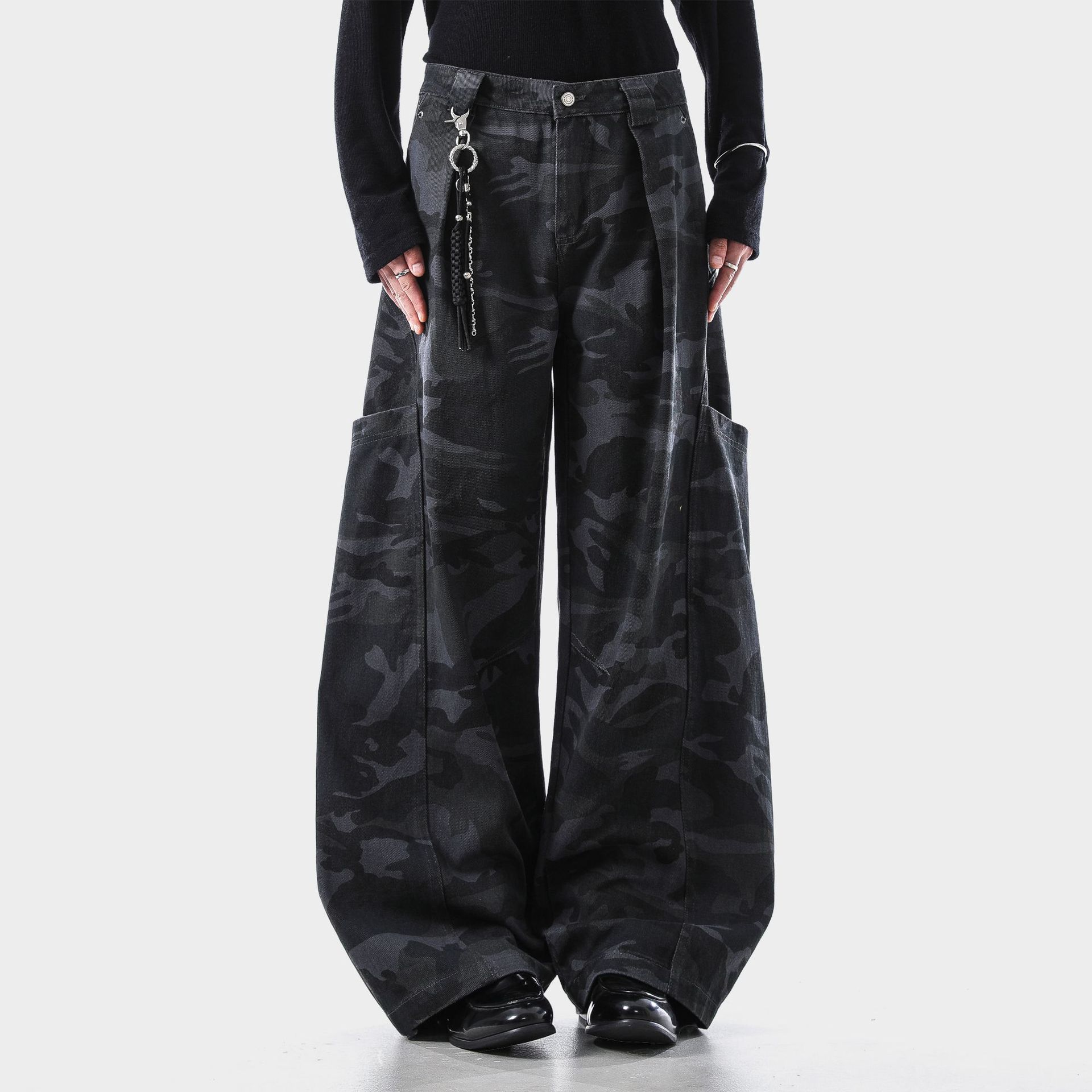 WK275美式复古男女街头高级感迷彩多口袋设计高街男式弯刀工装裤