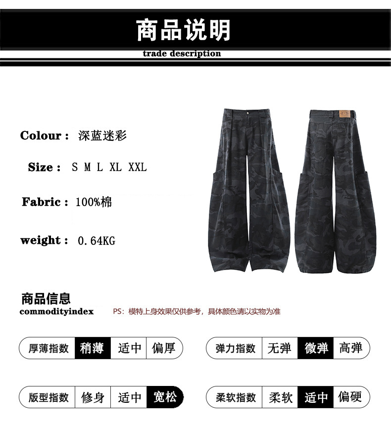 美式复古水洗深蓝迷彩工装裤男女解构设计叠堆感休闲长裤子
