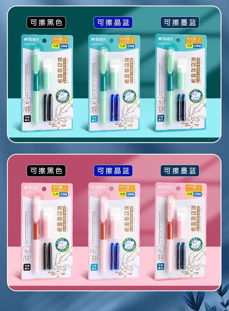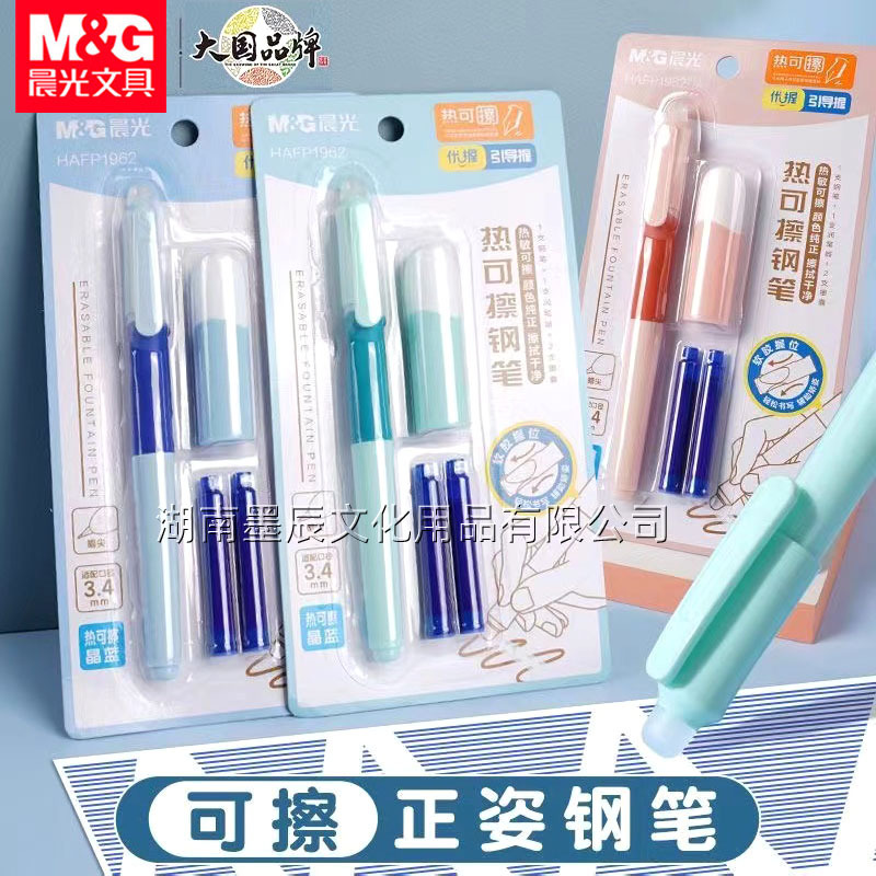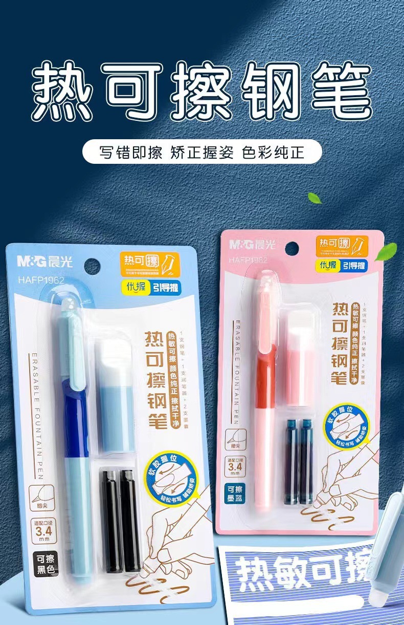 晨光热可擦钢笔HAFP1962可换墨囊学生书法硬笔优握摩易擦晶蓝钢笔
