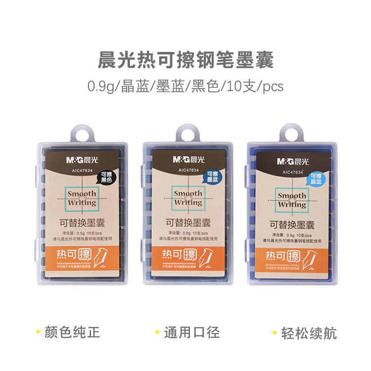 晨光47634热可擦墨囊10支装晶蓝黑色摩易擦钢笔墨囊学生可擦墨水