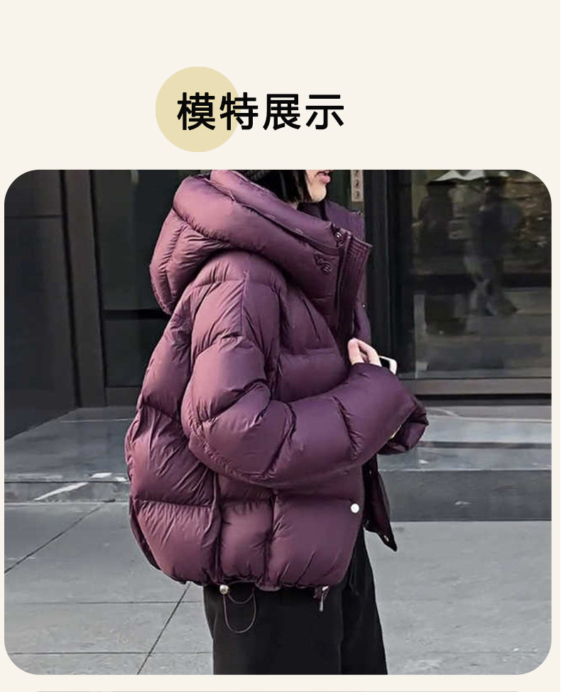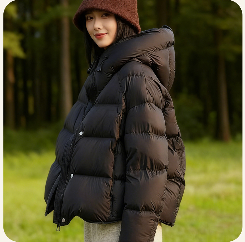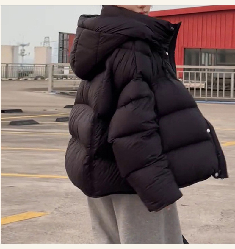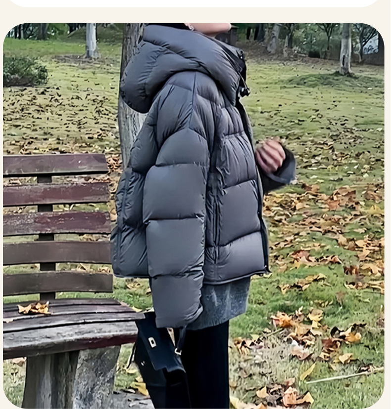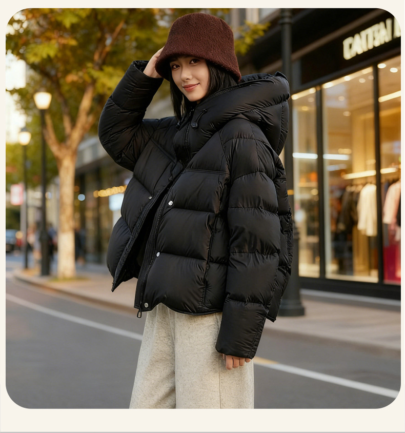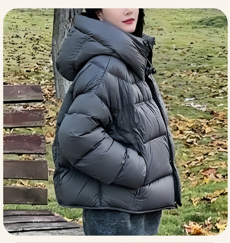 平湖羽绒服女2025冬季新款短款连帽宽松面包服加厚白鸭绒保暖外套