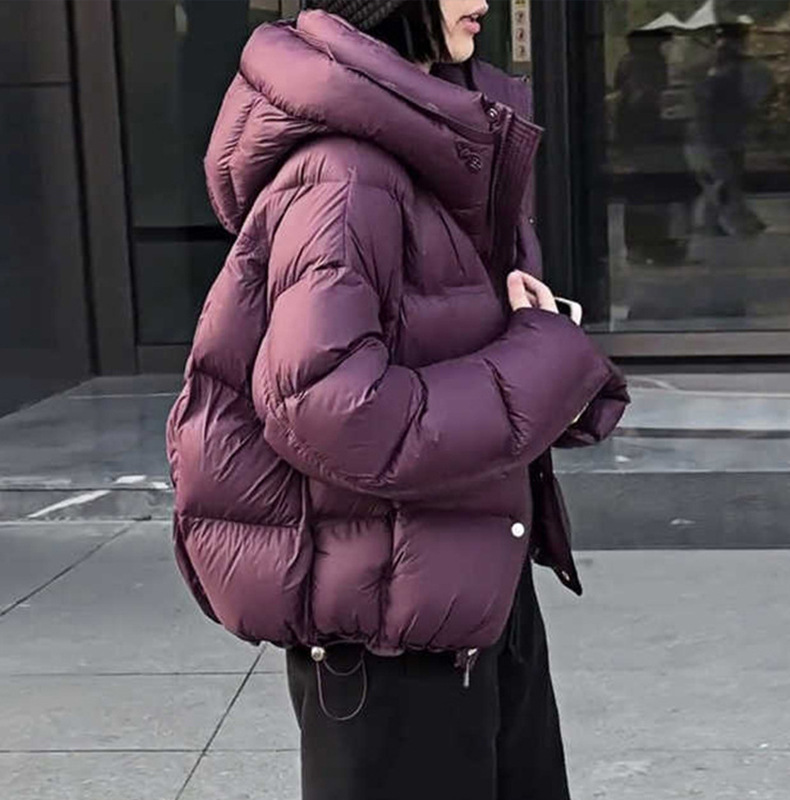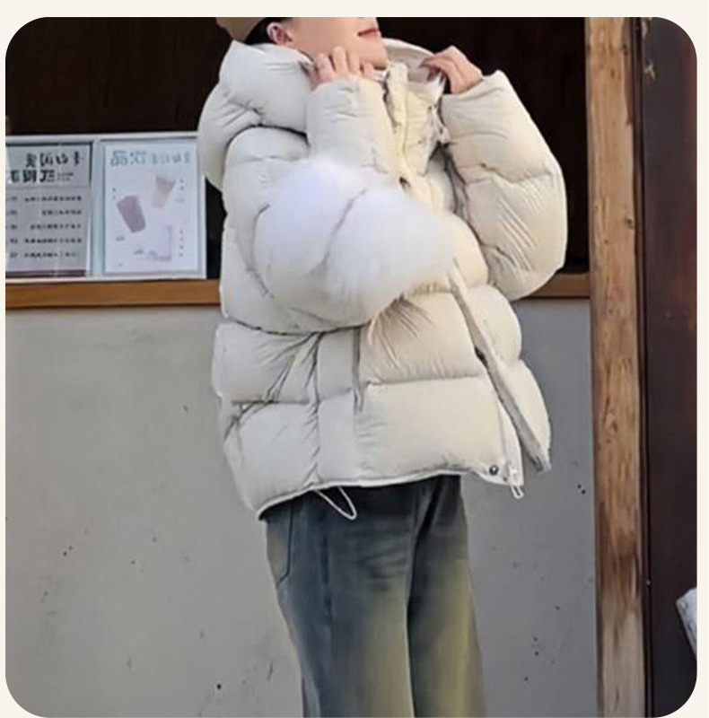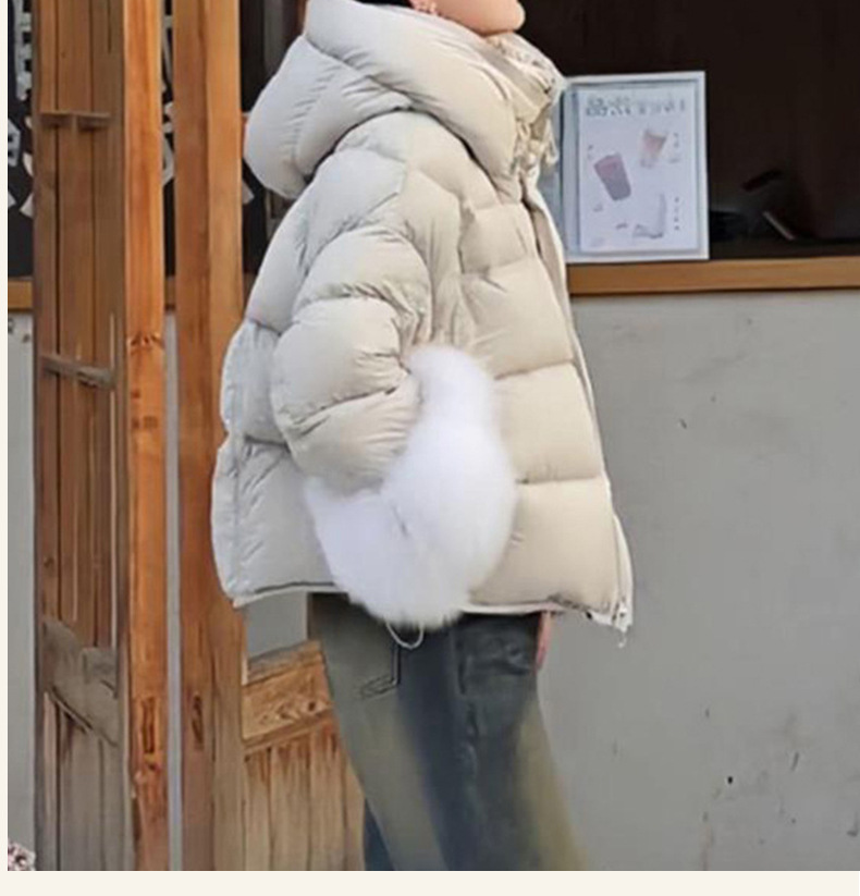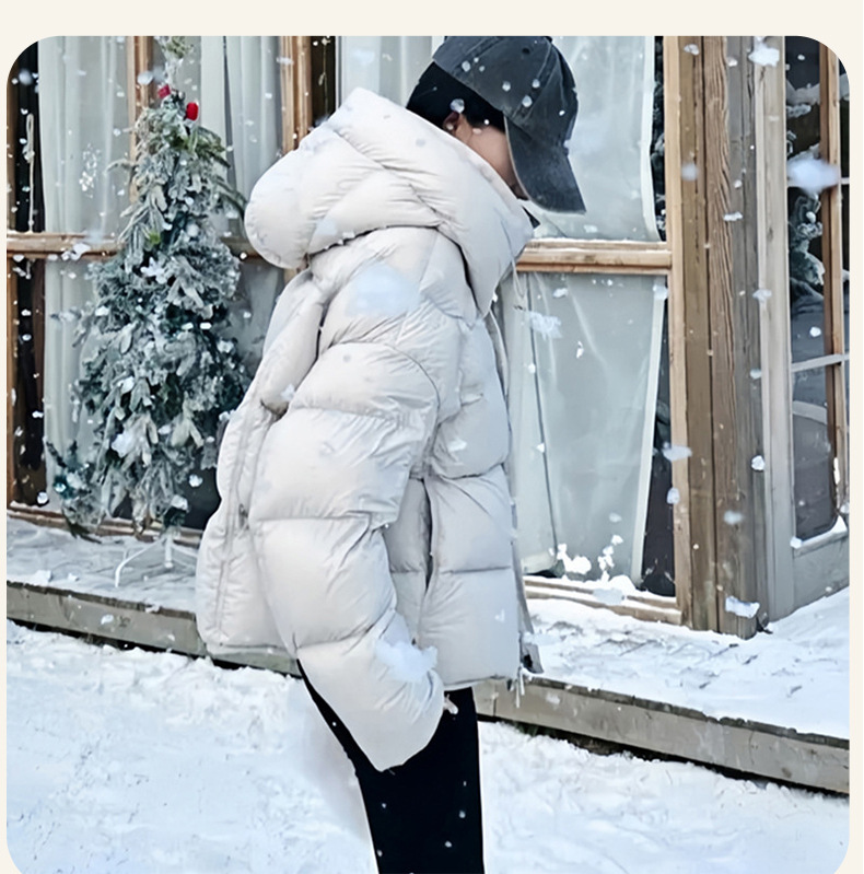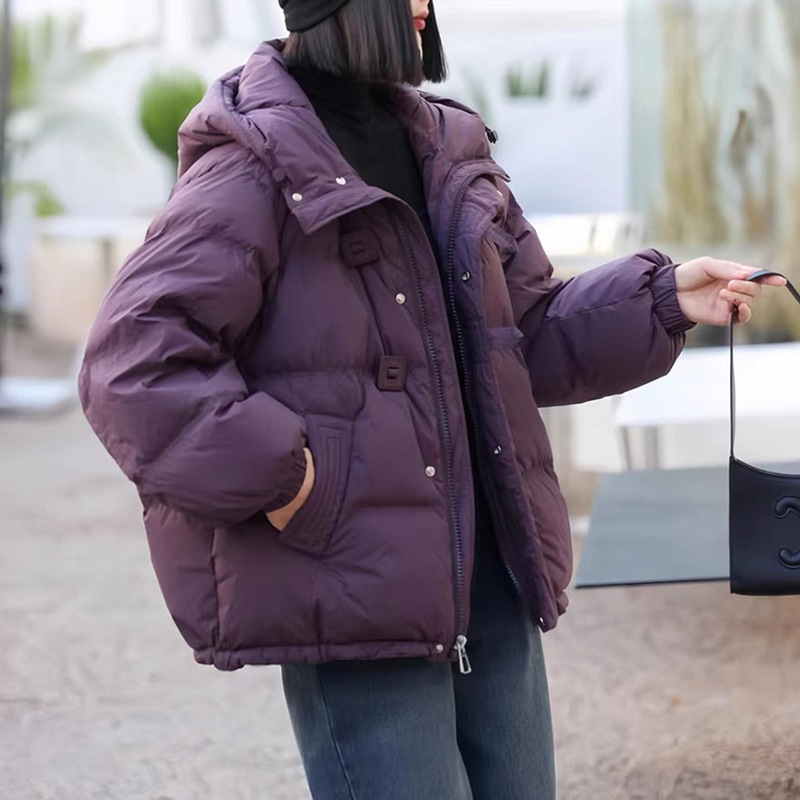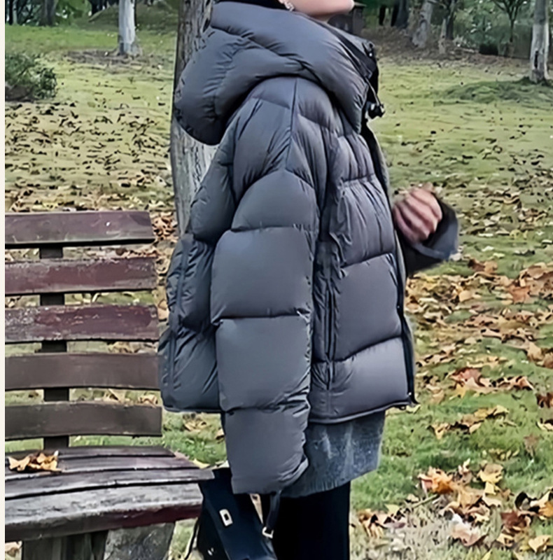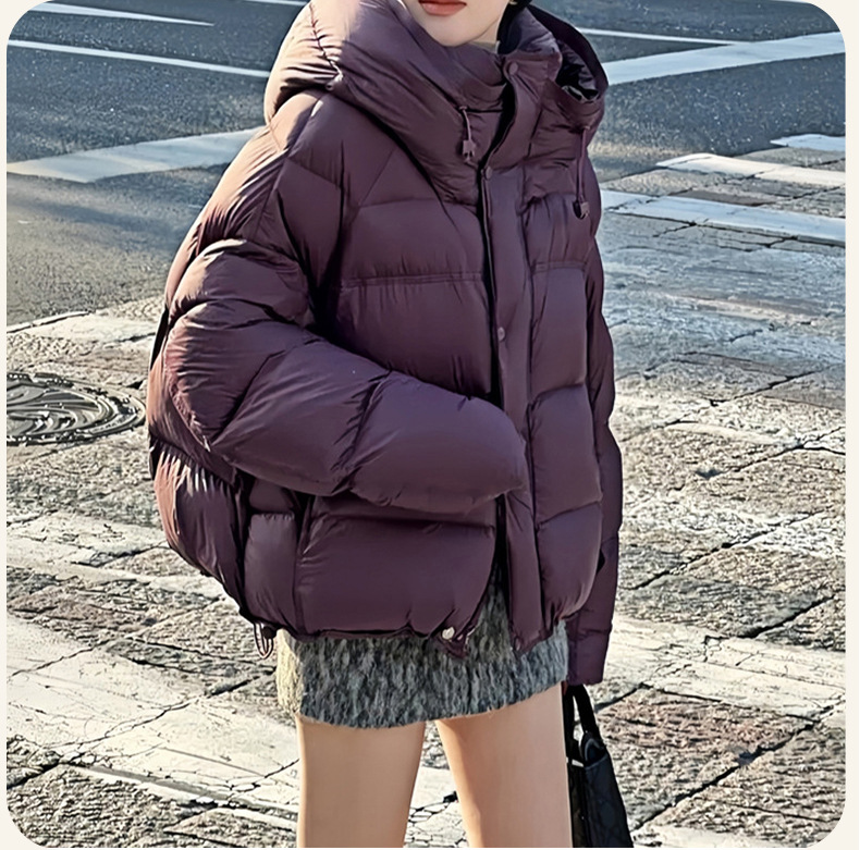 平湖羽绒服女2025冬季新款短款连帽宽松面包服加厚白鸭绒保暖外套