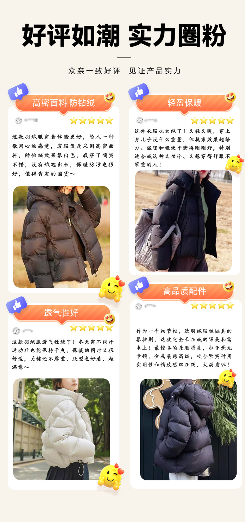 云朵泡芙羽绒服女白鸭绒短款小个子加厚面包服平湖羽绒服流行外套