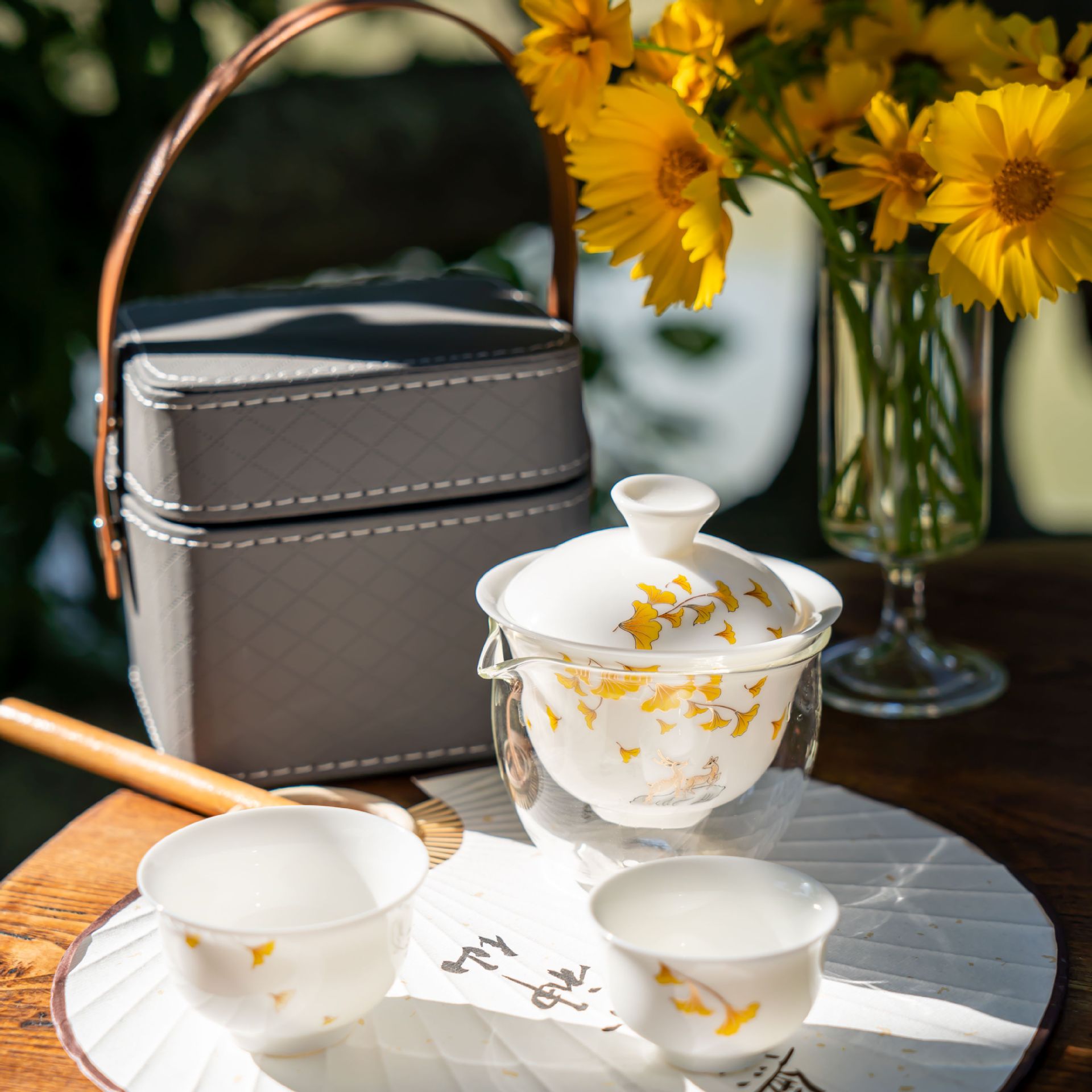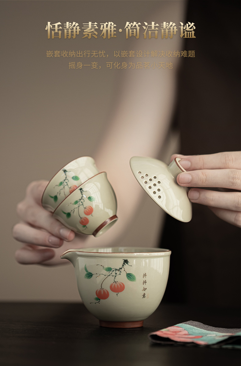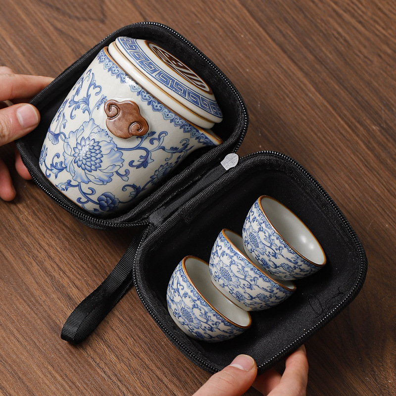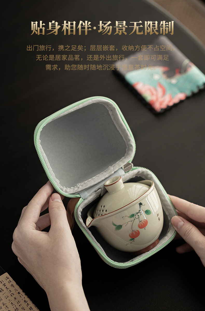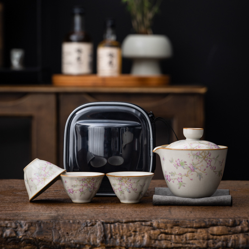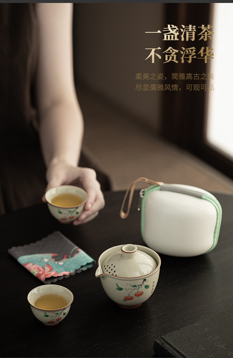 汝窯旅行茶器セット携帯式茶器開業イベントプレゼント屋外茶器お土産マーク