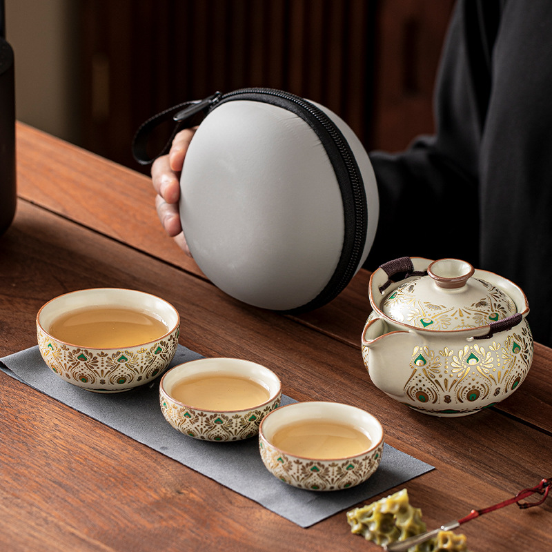ビジネスギフト旅行用茶器ポータブルクイックカップセット屋外用茶器セラミック高級カンフーセット厳選
