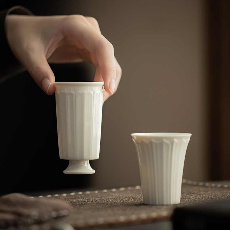 宋代定窯模造白マスターカップシングルカップティーカップエンボス加工手作りセラミック香りカップカンフーティーカップティーカップ