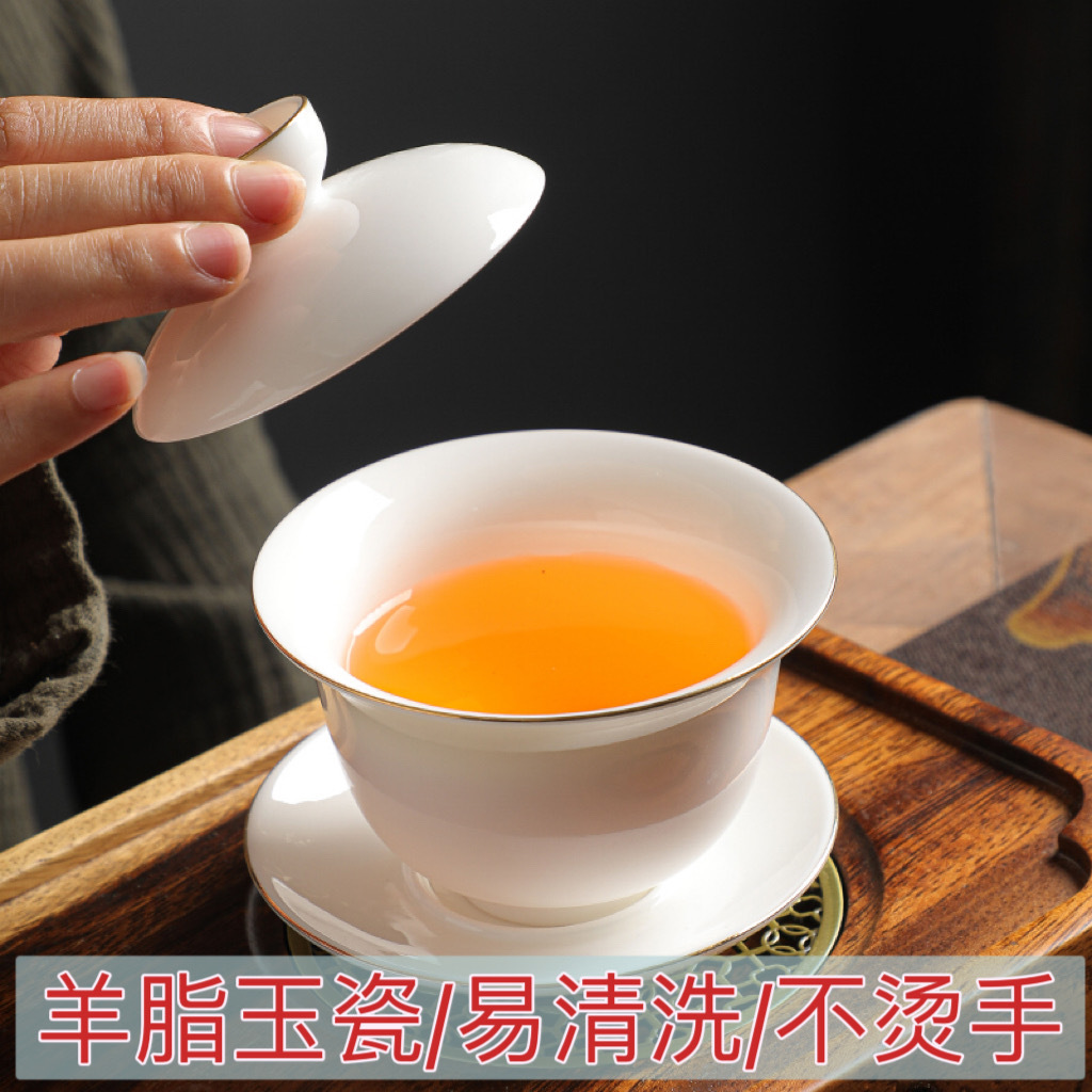 徳化陶器三才蓋碗茶杯茶碗金縁茶碗家庭用蓋碗熱くない白磁蓋碗三才