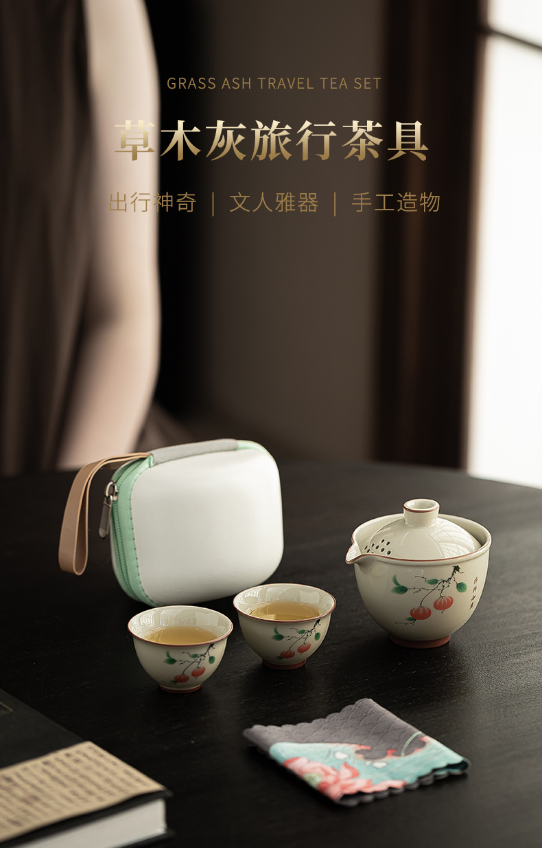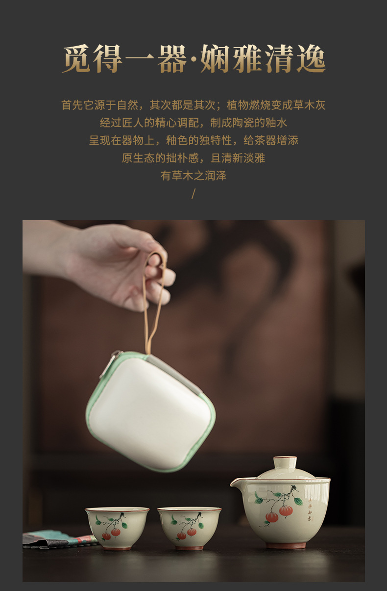 颜色 草木灰旅行茶具1壶2杯-柿柿如意,草木灰旅行茶具1壶2杯-素影,草木灰旅行茶具1壶1杯-禅意