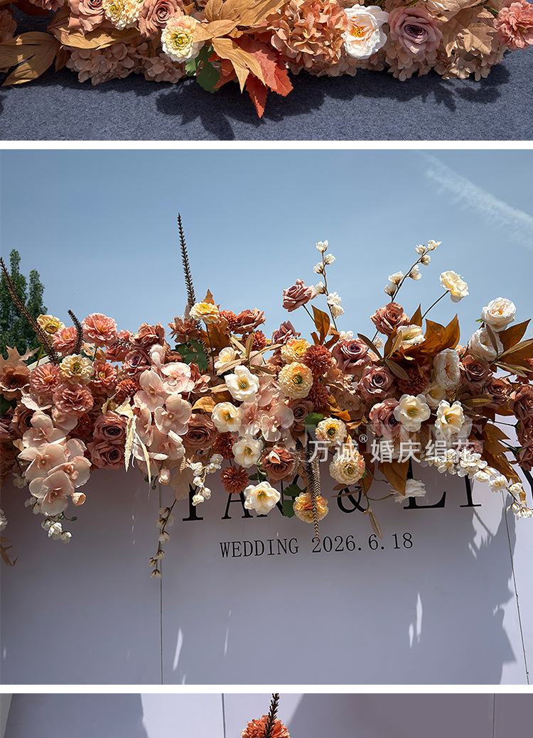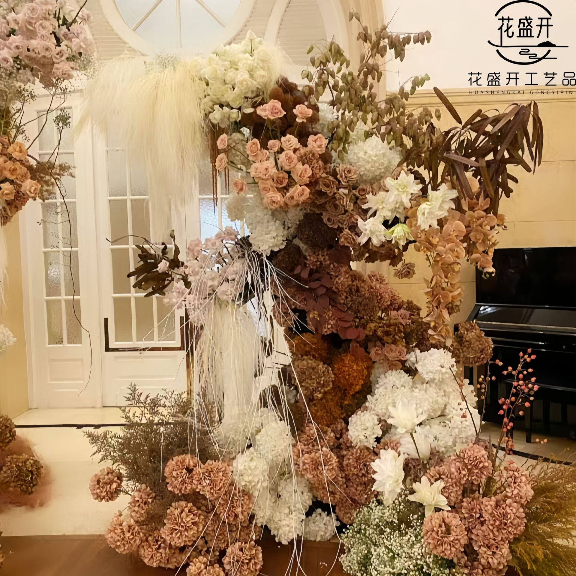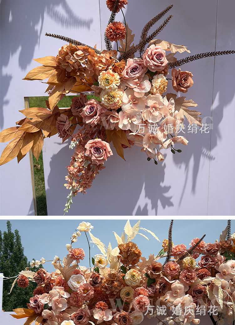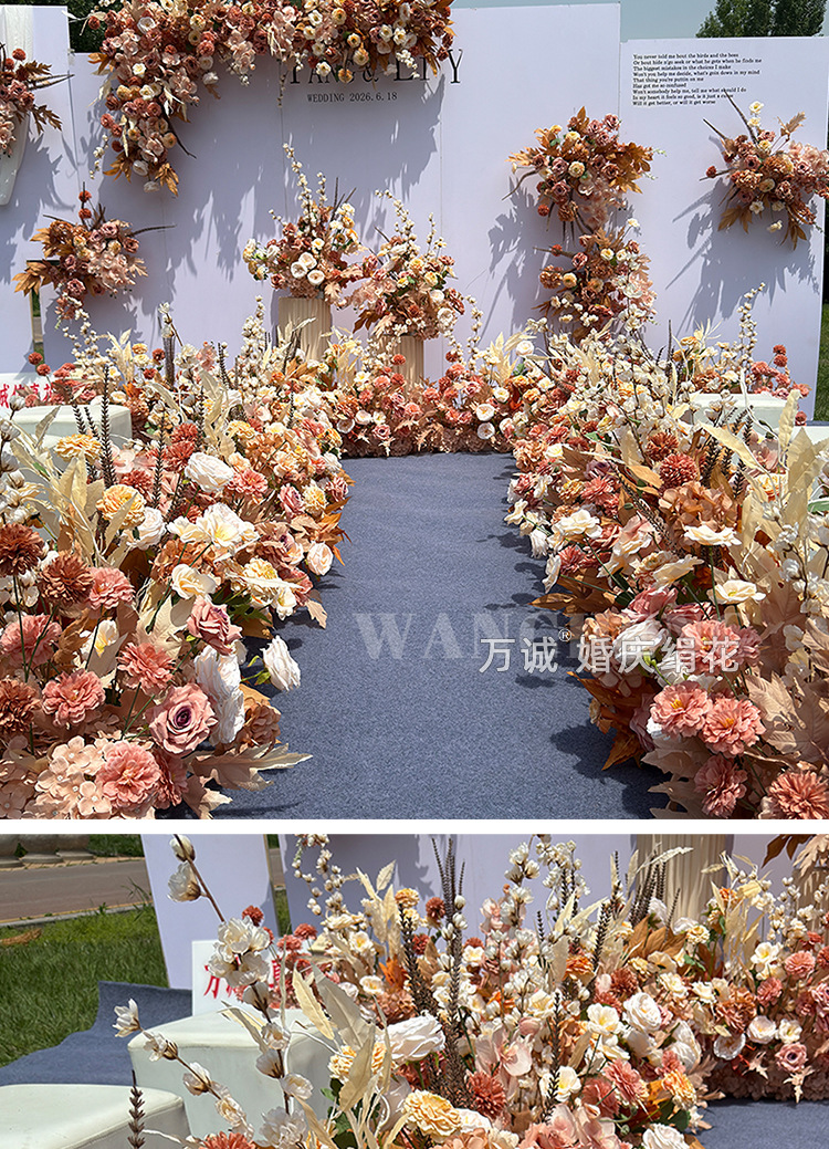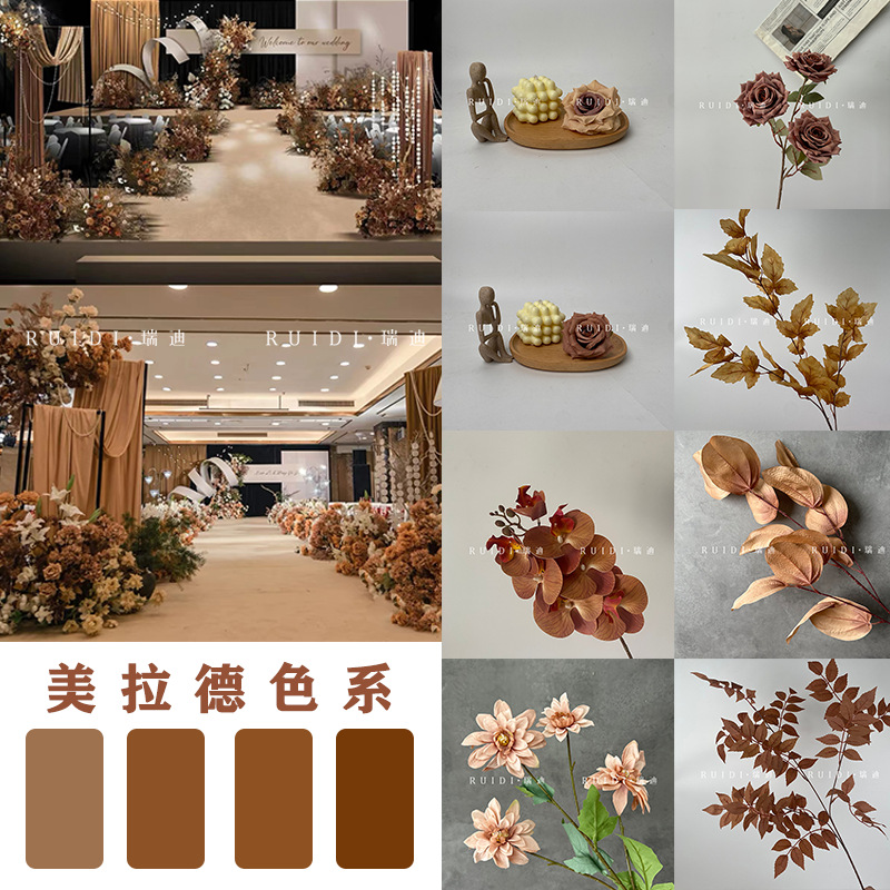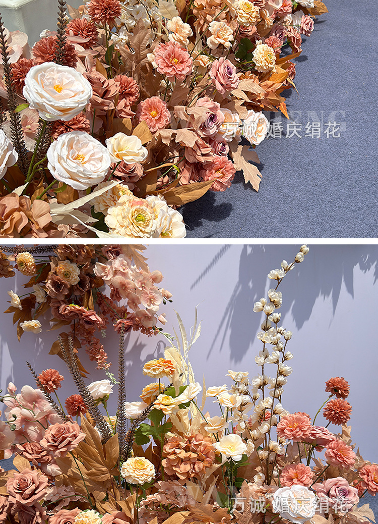 焦糖色咖啡婚庆花艺仿真花婚礼布置点花排花角花路引花背景装饰花