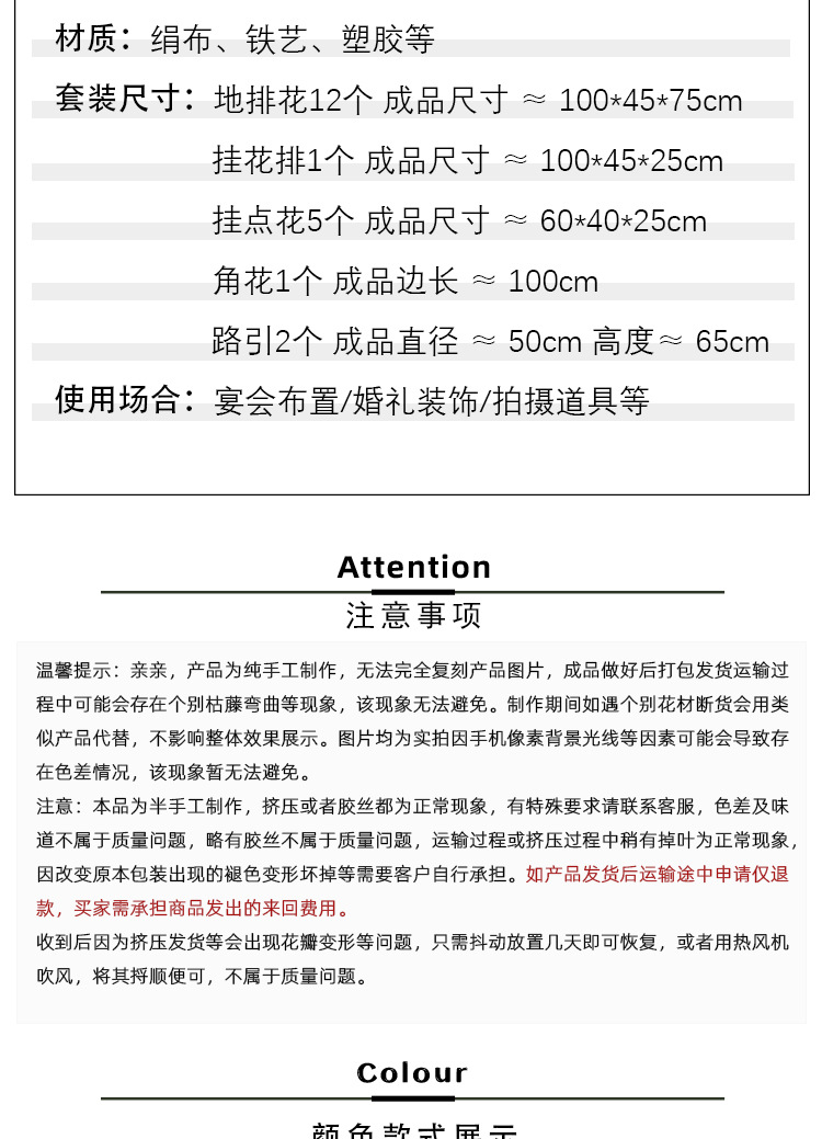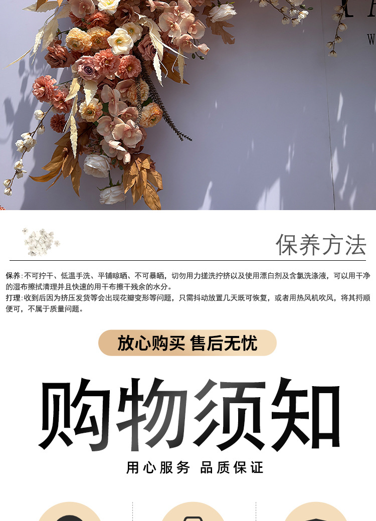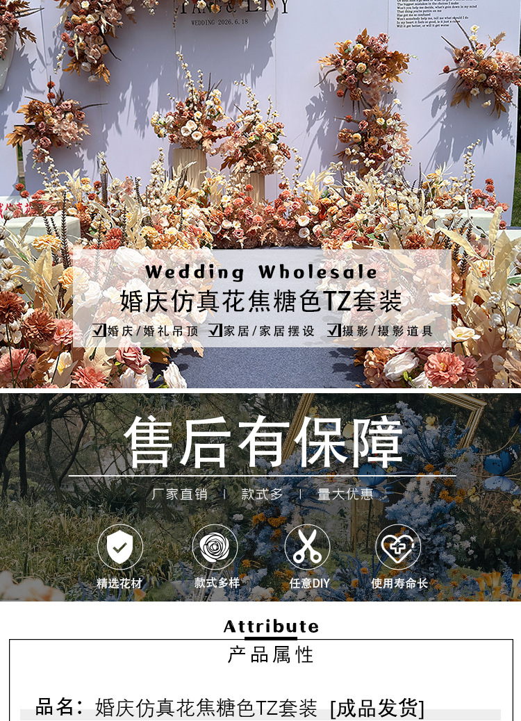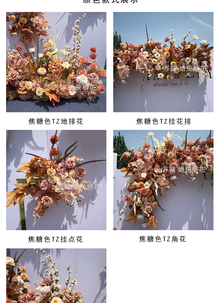 颜色 焦糖色TZ地排花,焦糖色TZ角花,焦糖色TZ一米挂花排,焦糖色TZ挂点花,焦糖色TZ路引花,焦糖色TZ套装-地排花12路引花2挂花排1挂点花5角花1送白色纸柱子2个