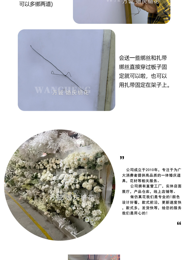 新商品の結婚祝いの大きいタイプの花を並べて絹の花の完成品の装飾をシミュレーションします。