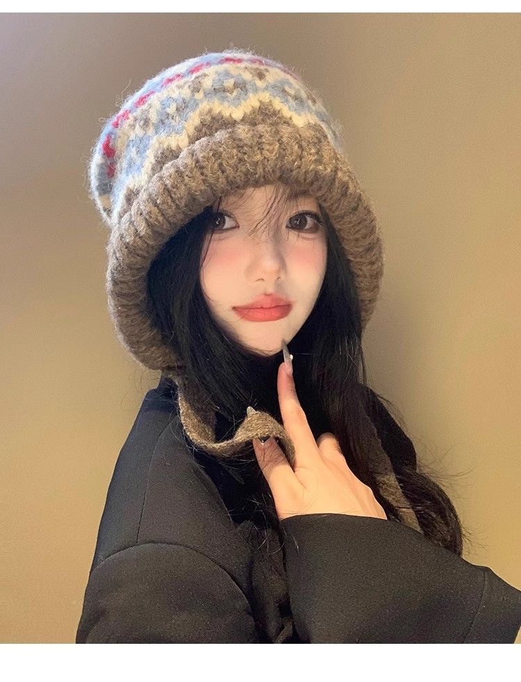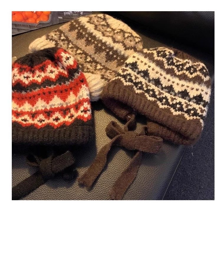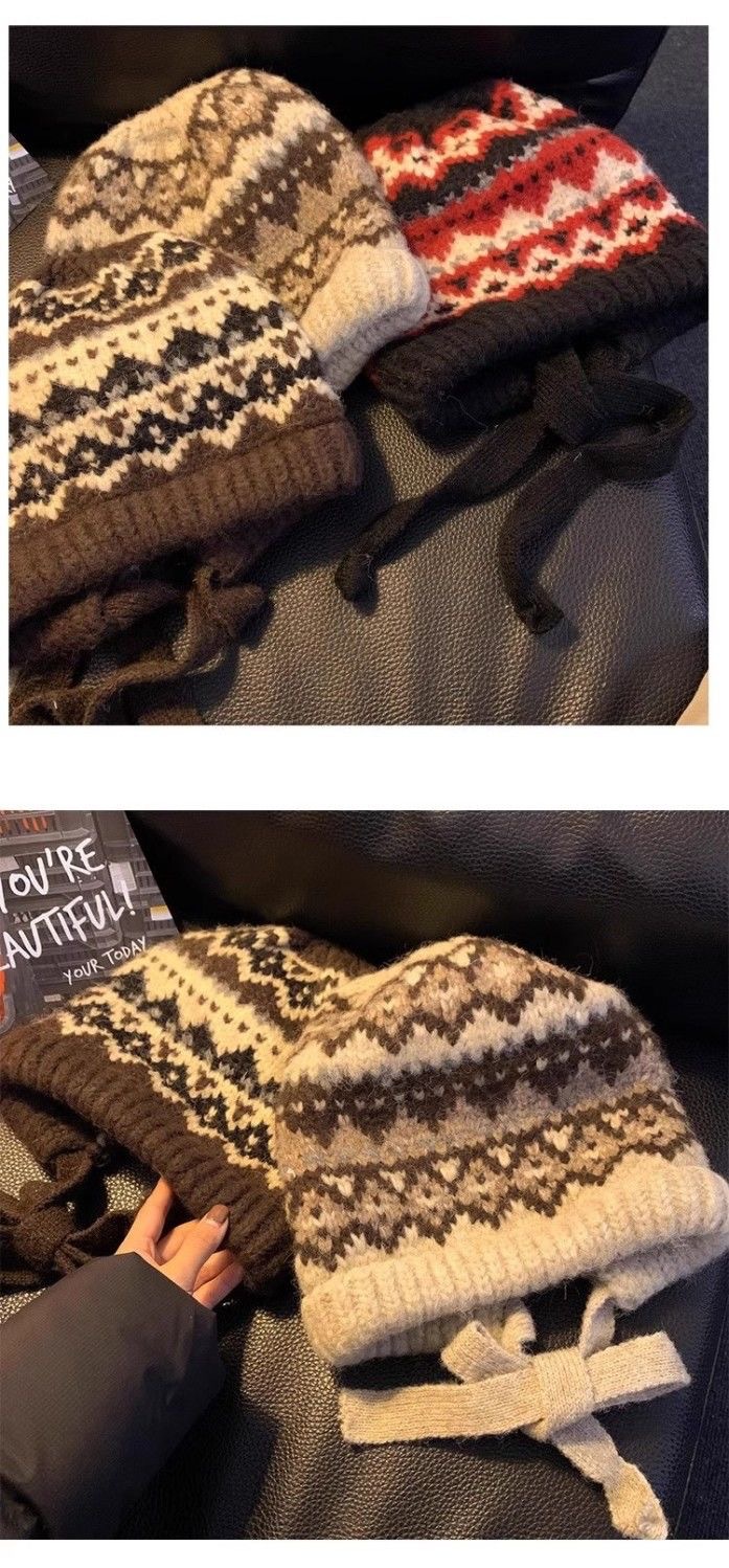 费尔岛风针织帽子女冬季复古巴拉克拉法帽包包帽保暖护耳毛线帽潮