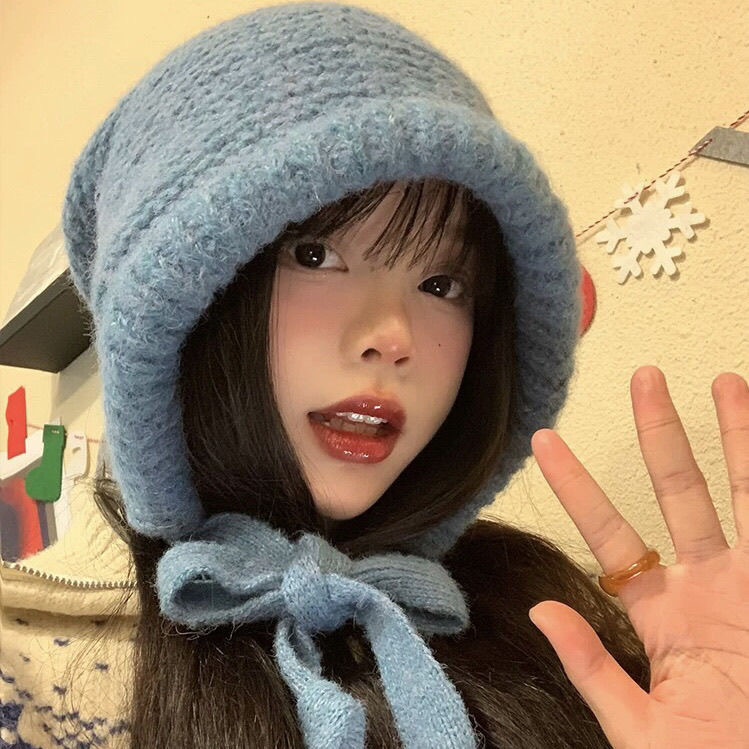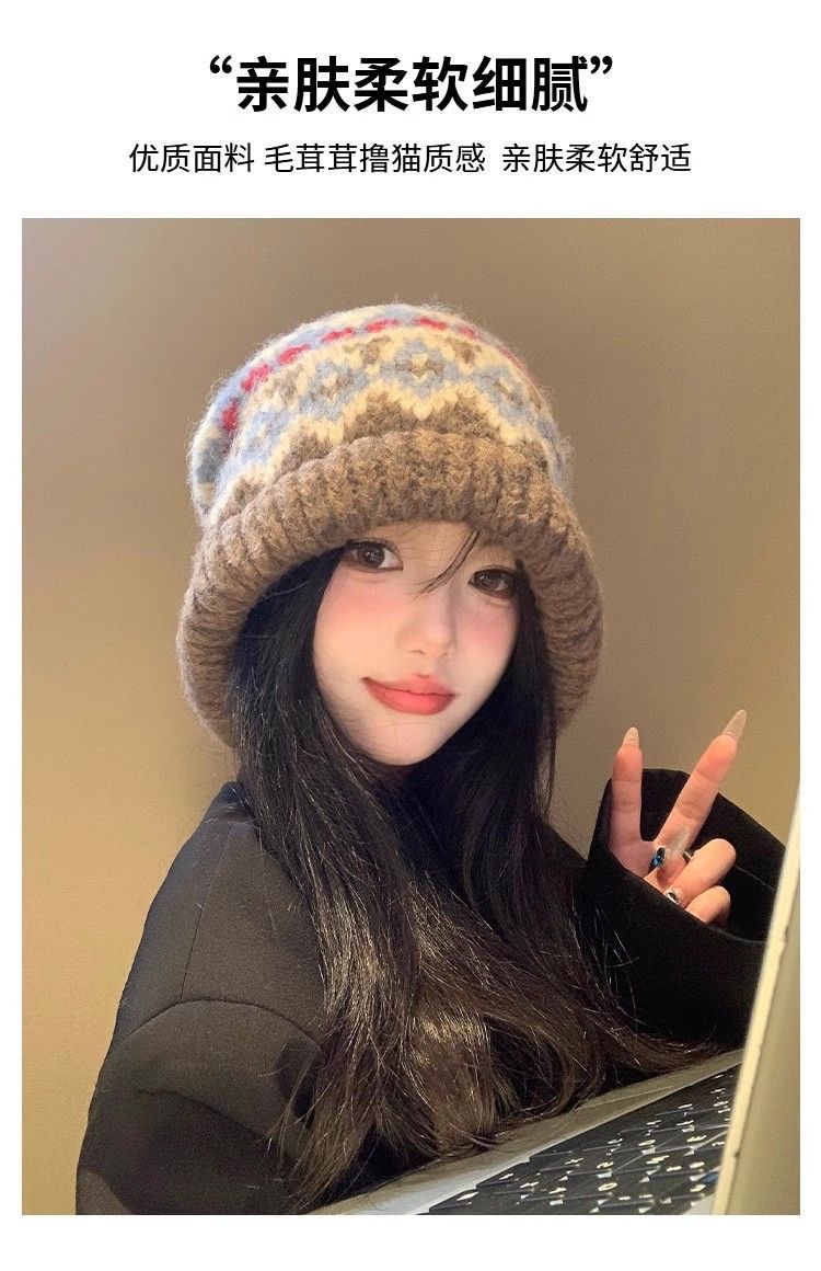 2025年秋冬韩版彩编拼接毛绒帽子女百搭时尚显脸小包头帽保暖护耳