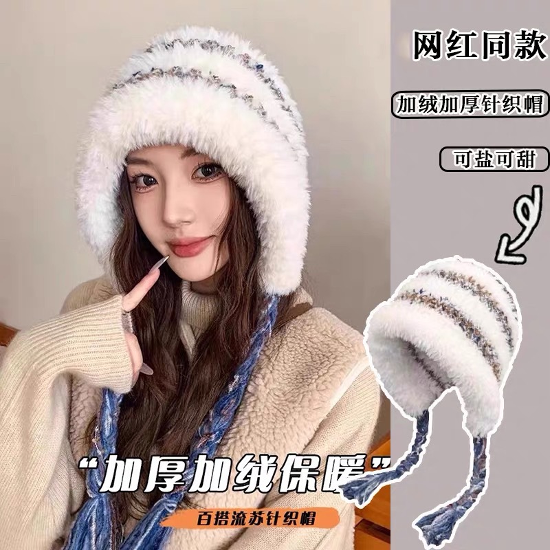 可爱毛绒帽子女冬季加绒针织毛线帽护耳保暖毛茸茸东北防寒雷锋帽