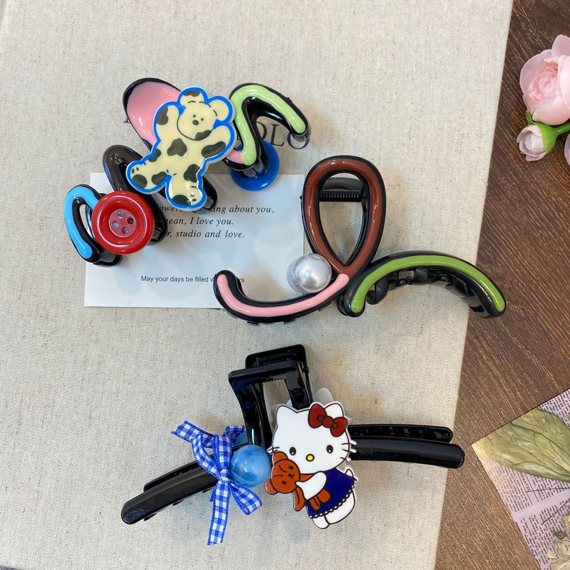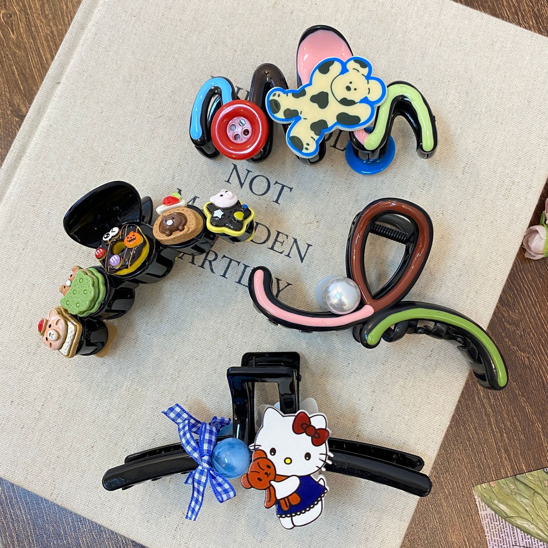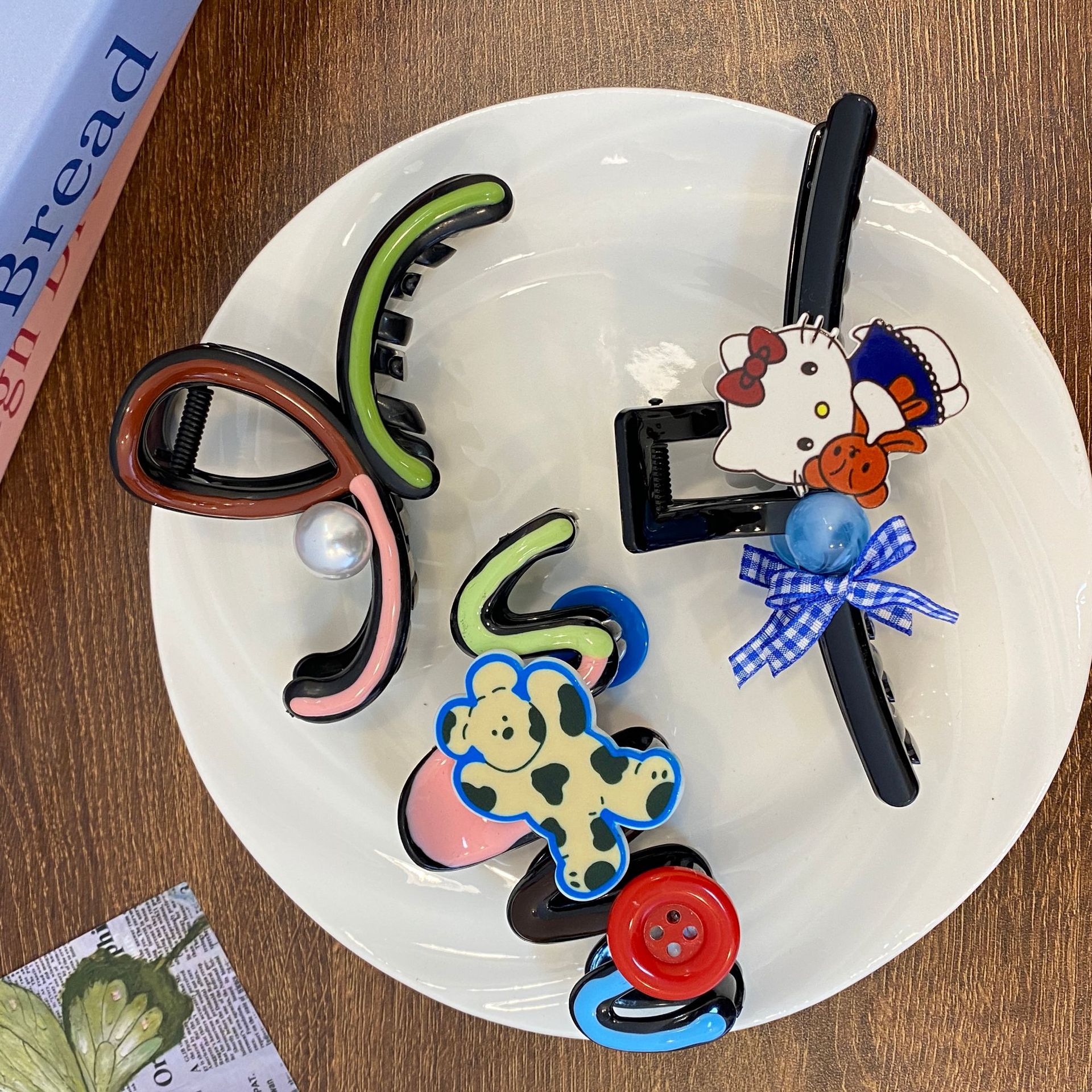 かわいい手描きの線の子犬クリップ 2025 バックヘッドハイエンド韓国アクリルヘアクリップ大型サメクリップ