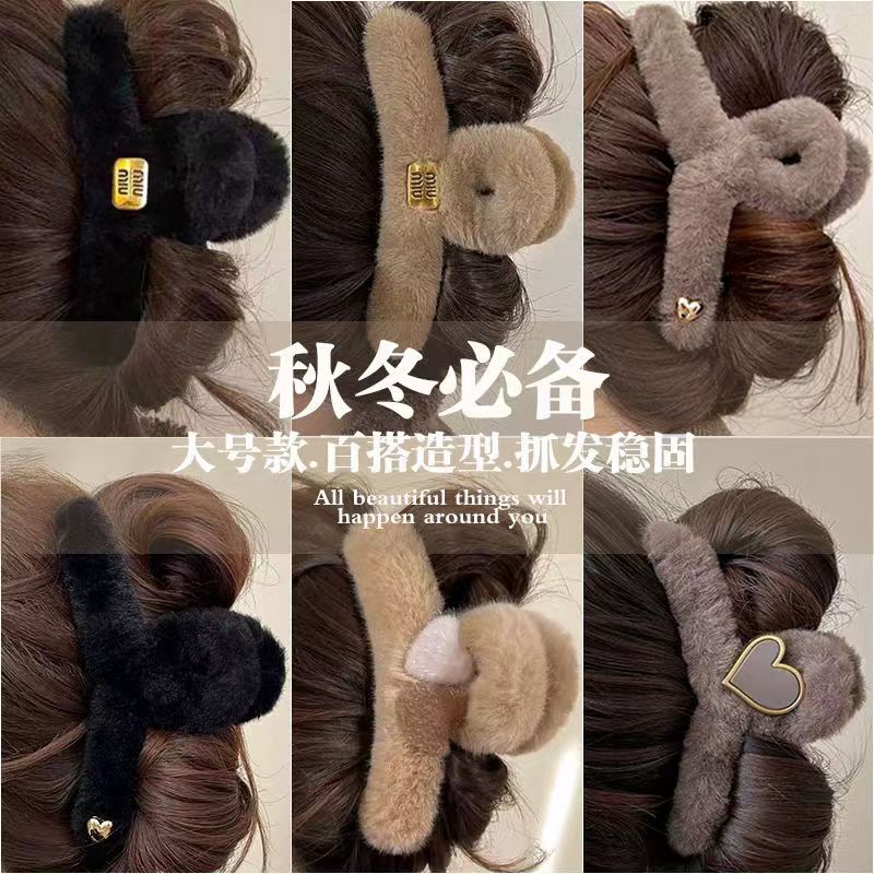 秋冬时尚蝴蝶结毛绒抓夹女2025新款后脑勺鲨鱼夹盘发夹女发卡头饰