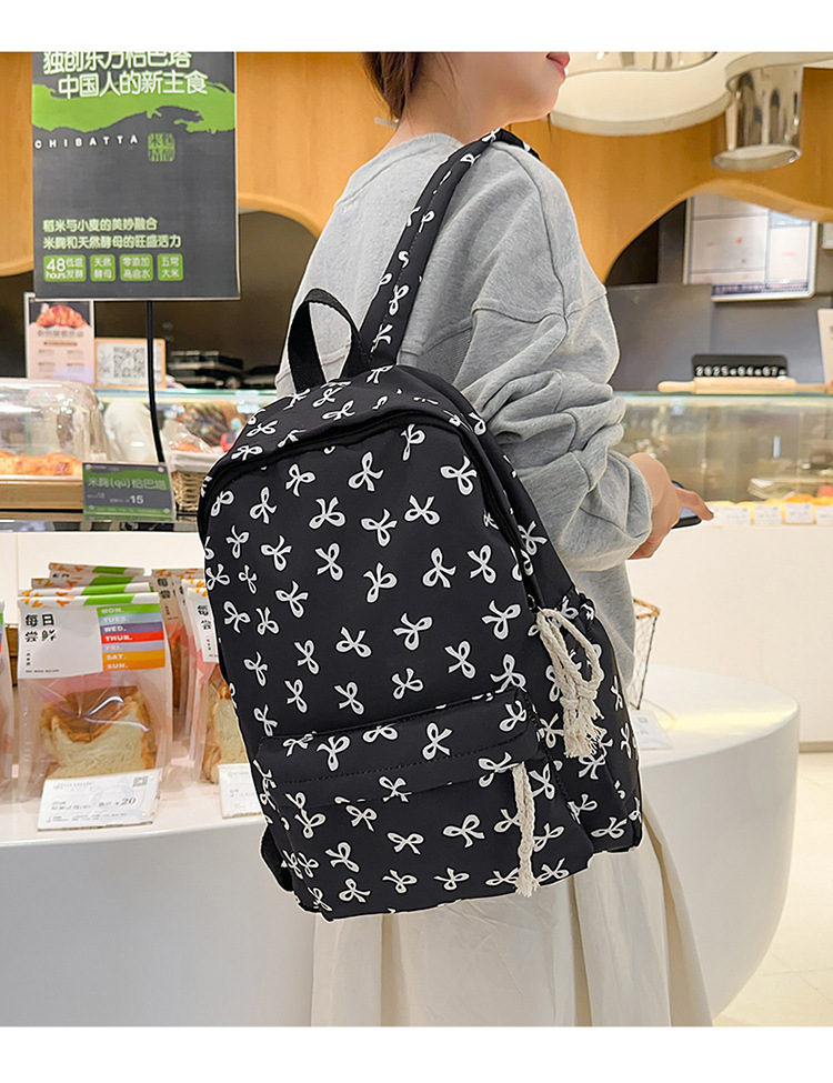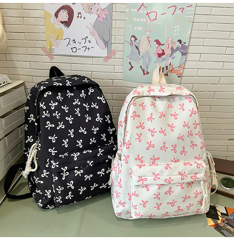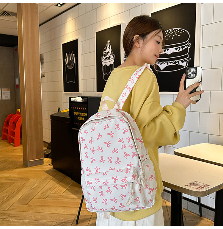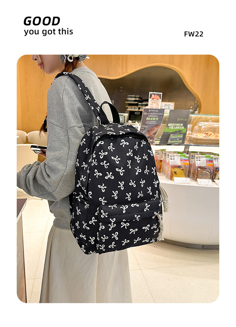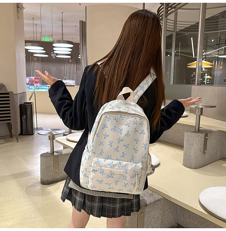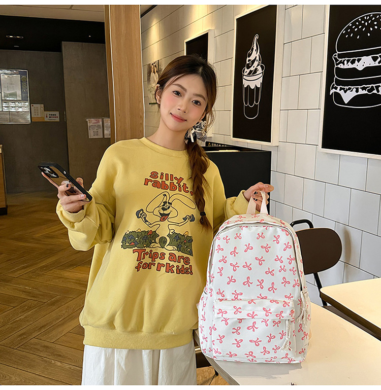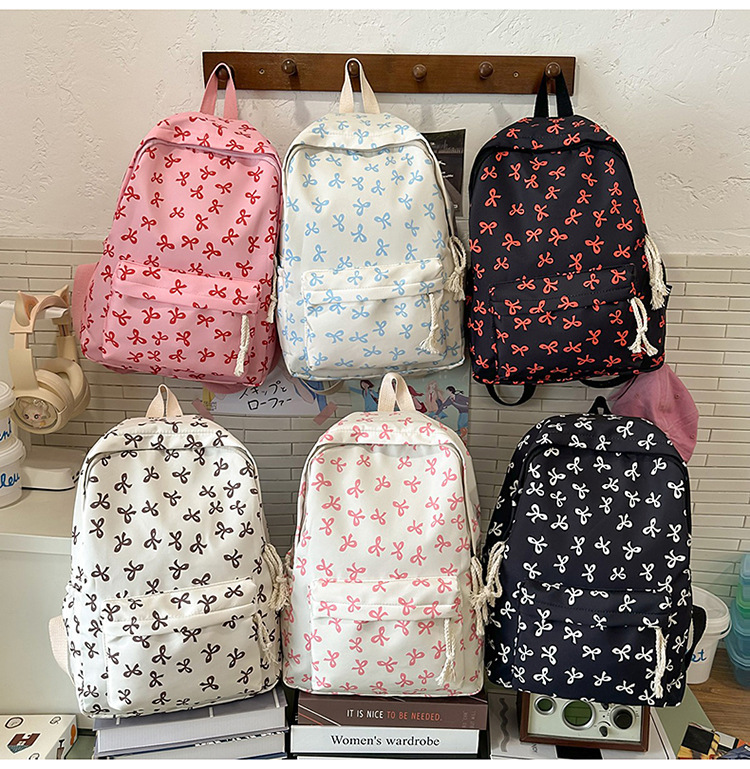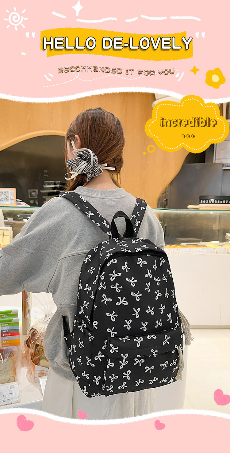 新款背包蝴蝶结元素大容量初高中休闲简约学生书包轻便质感双肩包