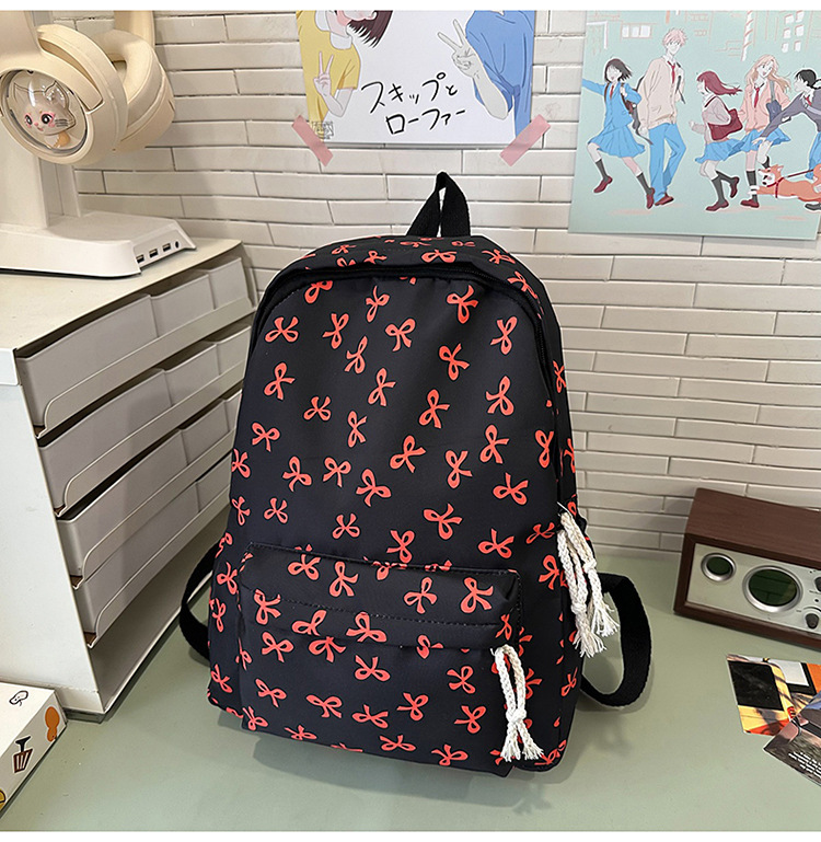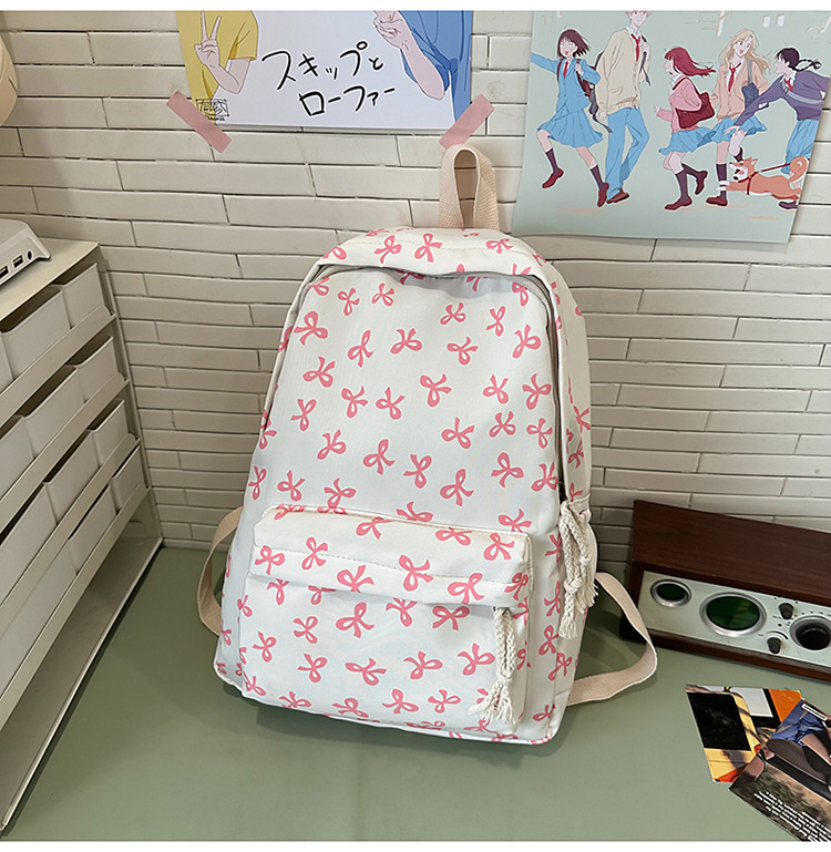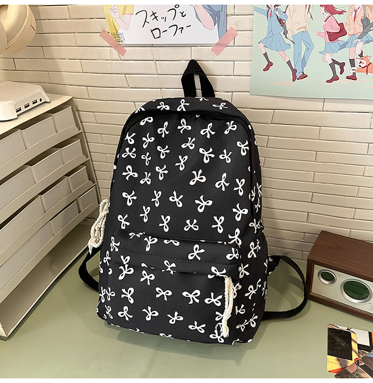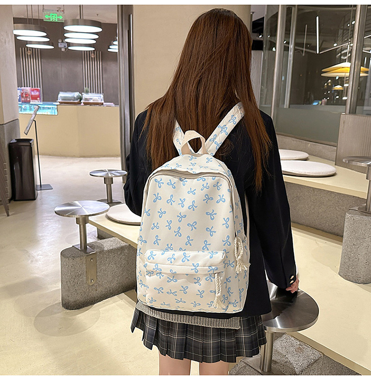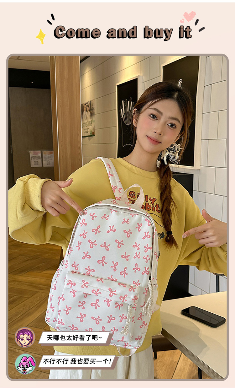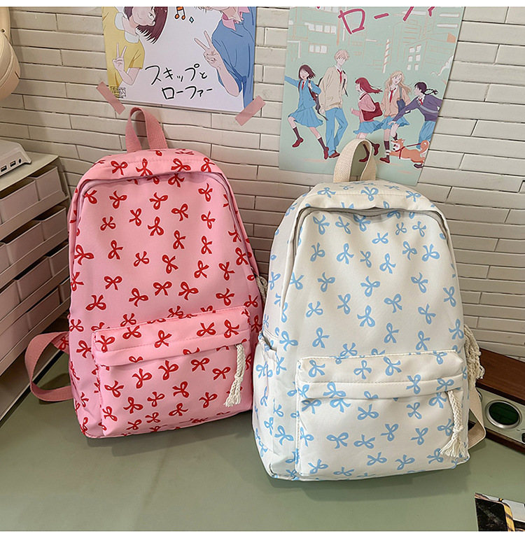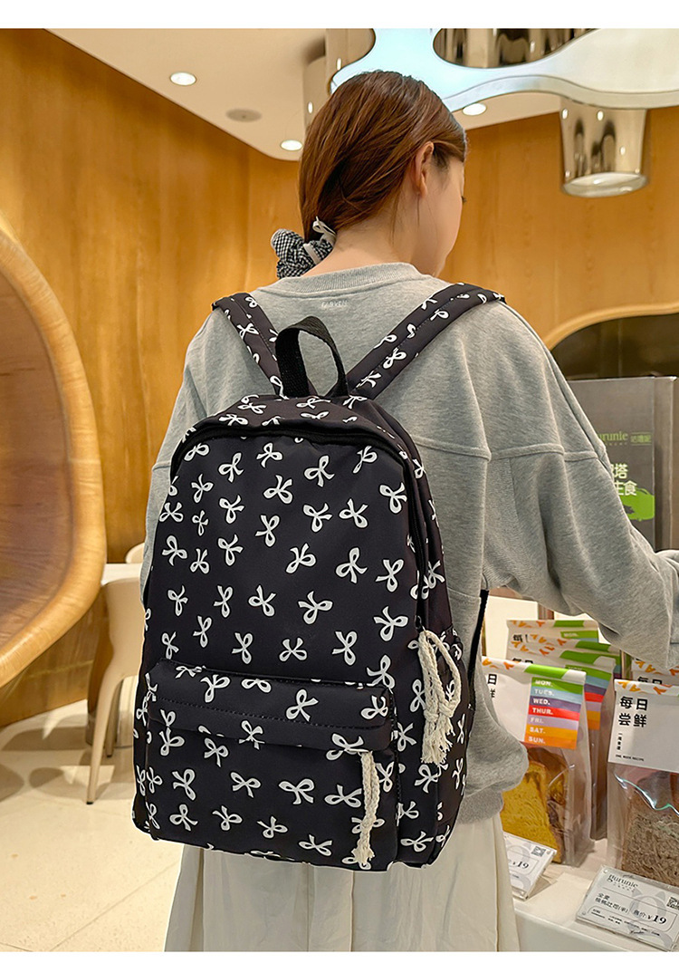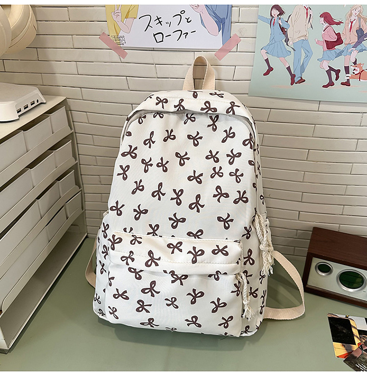 新款背包蝴蝶结元素大容量初高中休闲简约学生书包轻便质感双肩包