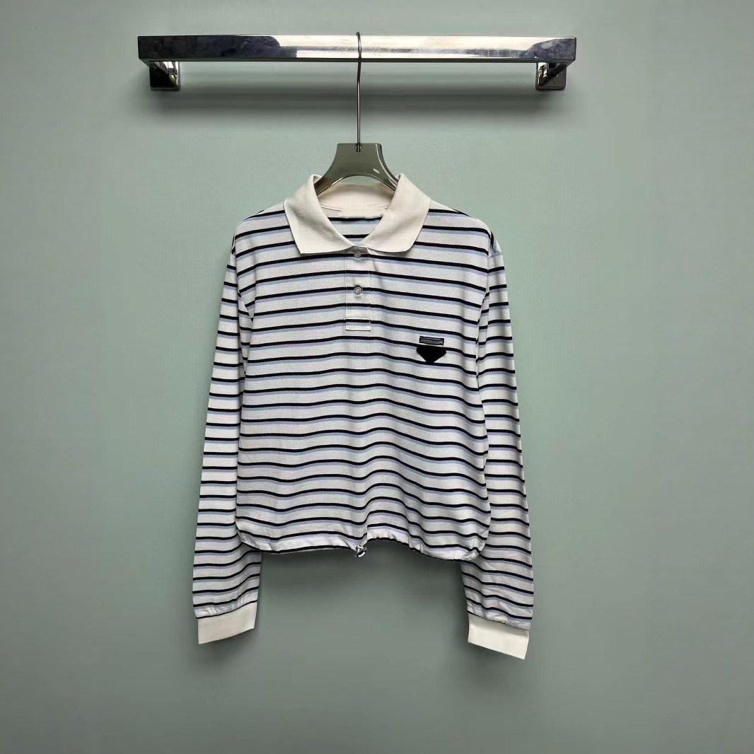 南油高定2025秋季新品短款抽绳条纹长袖POLO衫百搭针织条纹