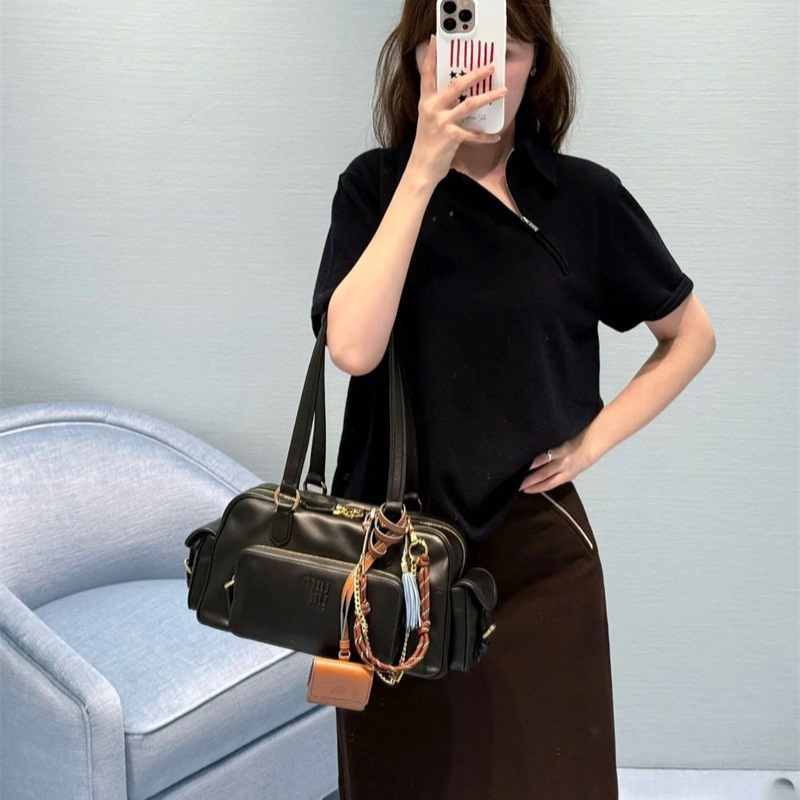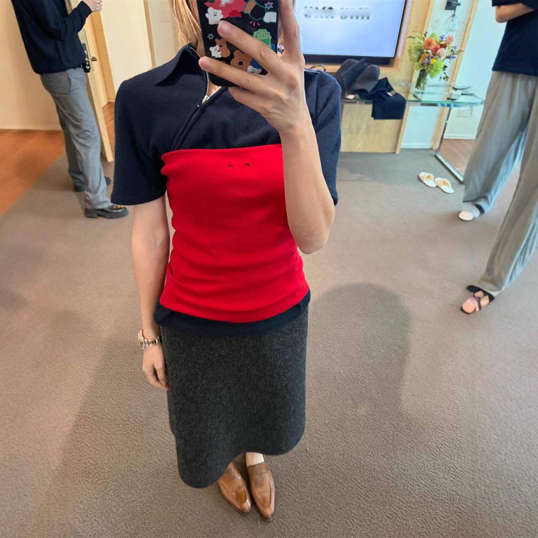 2025秋季新款南油miu简约学院撞色字母刺绣斜拉链翻领短袖Polo衫