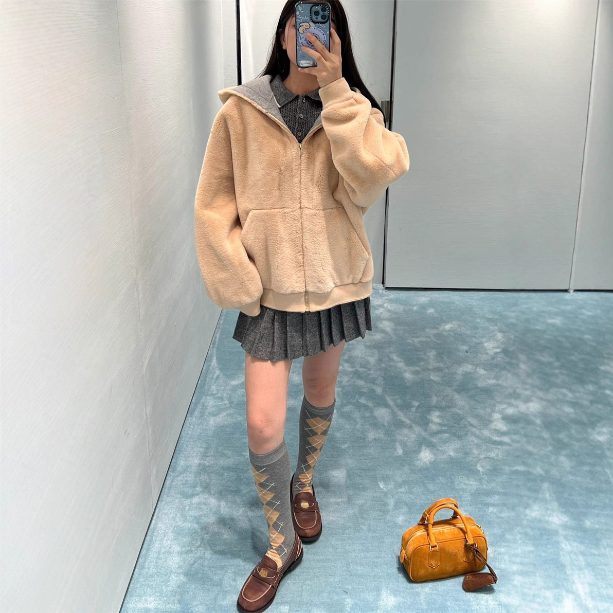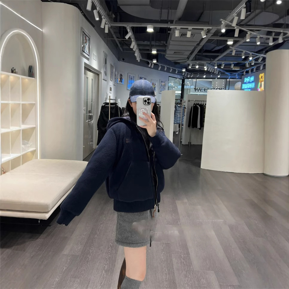 24秋冬新品南油高定iuシンプルなカーディガン快適帽子ジャケット毛皮一体コート