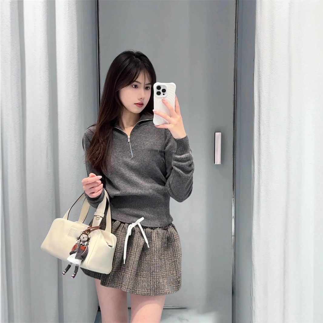 25秋冬新款南油高定Miu简约休闲百搭石板灰羊绒半拉链毛衣