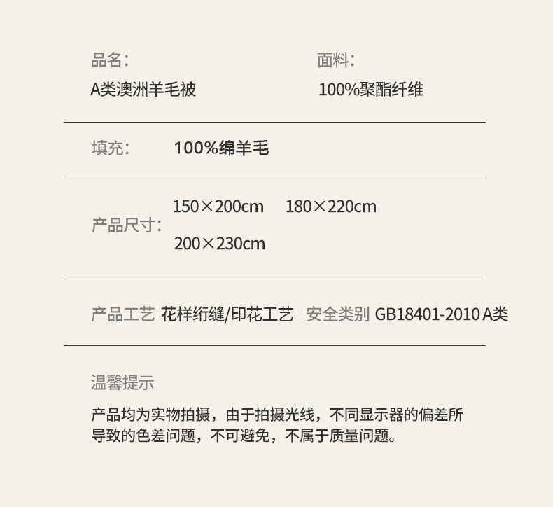 尺寸规格 150*200cm【4斤】,150*200cm【6斤】,200x230cm【4斤】,200x230cm【6斤】,200x230cm【8斤】,180x220cm【6斤】,180x220cm【8斤】,200X230cm【10斤】