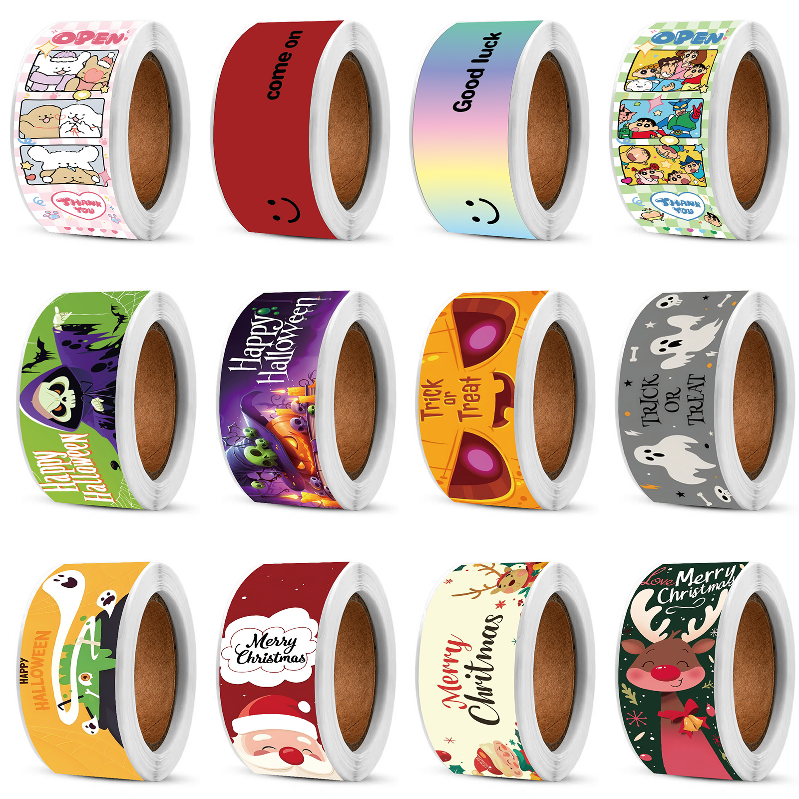跨境原创圣诞节万圣节贴纸卷礼品包装封口贴手账胶带标签贴纸批发