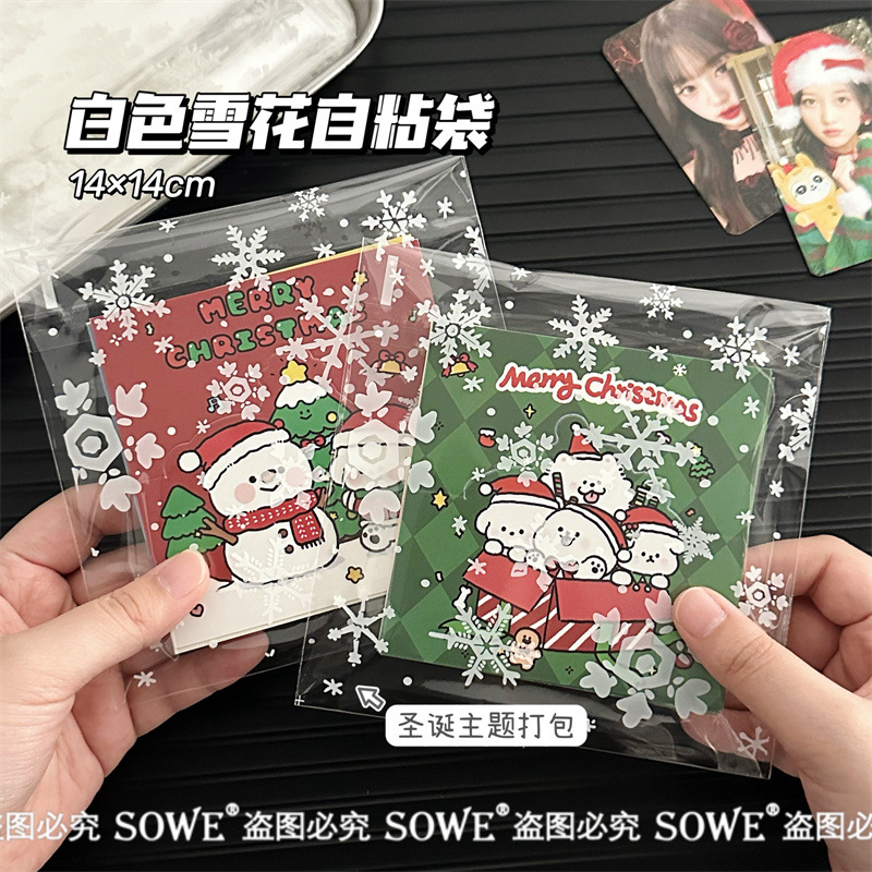 2025 新しい OPP 粘着袋クリスマス包装袋サンタクロース雪だるま粘着袋スノーフレーク包装袋卸売