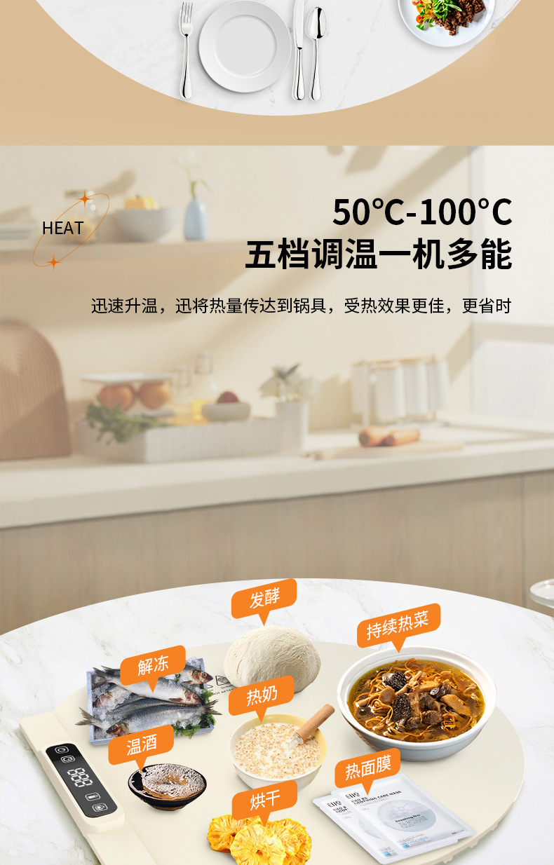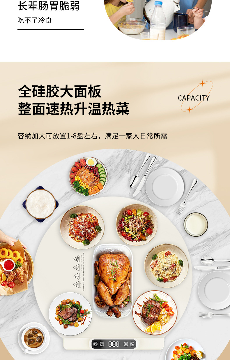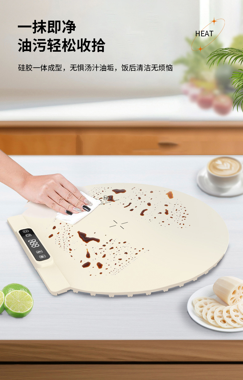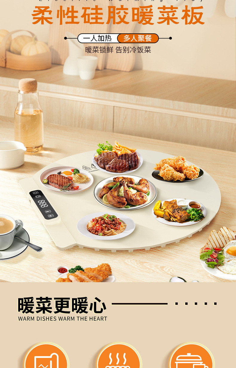 三个小厨暖菜板圆形热菜板保暖硅胶垫保温多功能家用加热神饭菜器