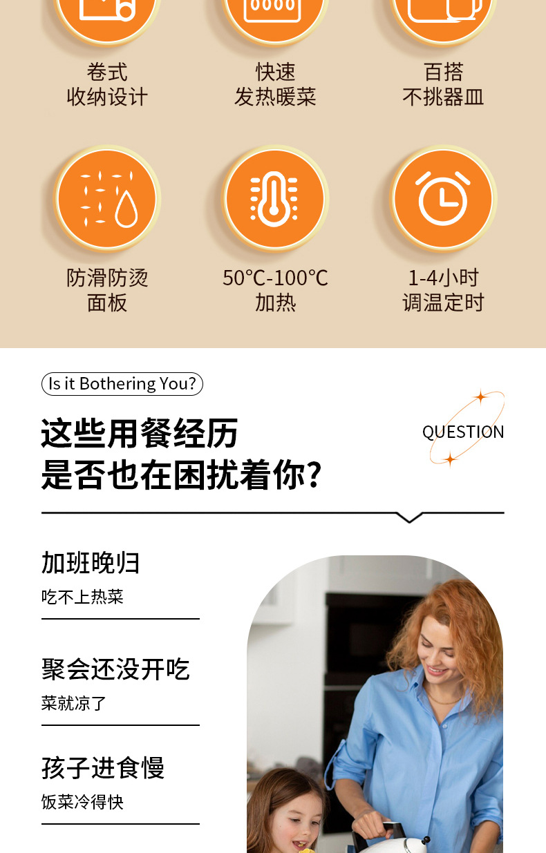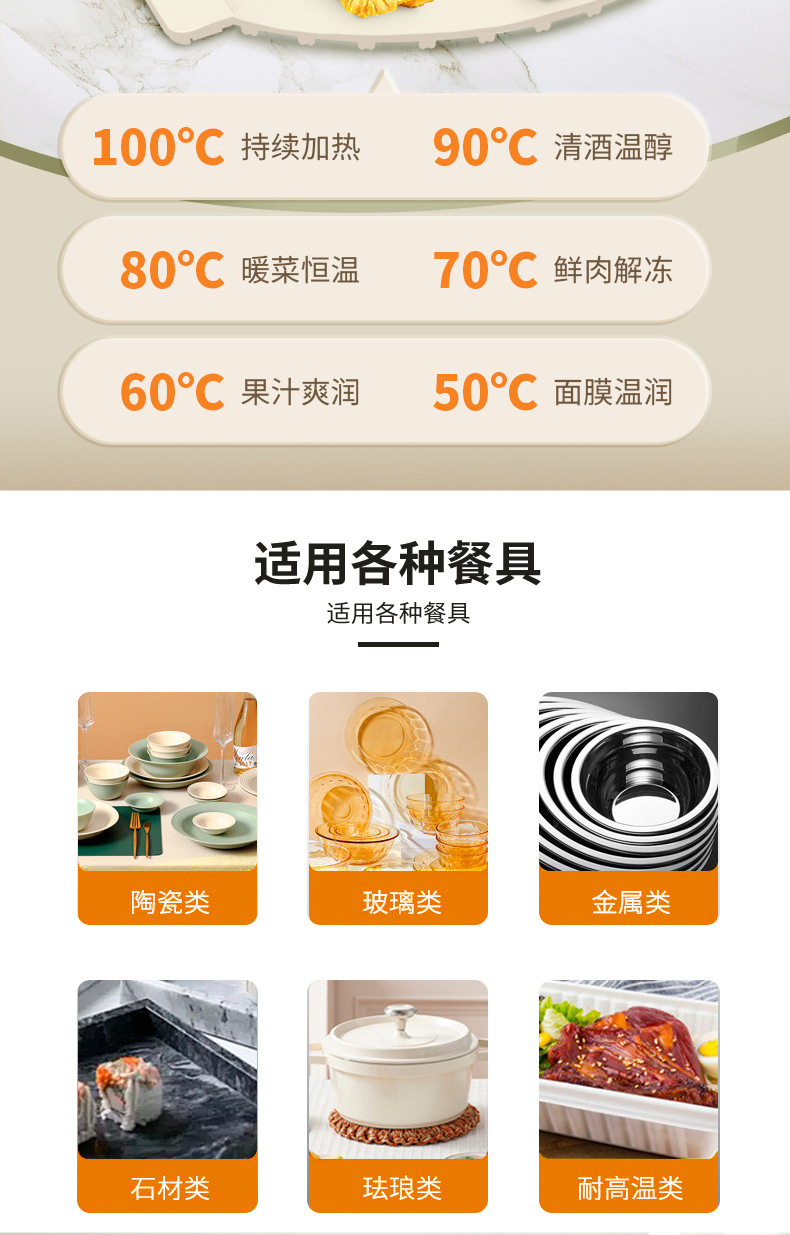 暖菜板带火锅家用多功能饭菜保温板圆餐桌旋转盘电加热板热菜神器