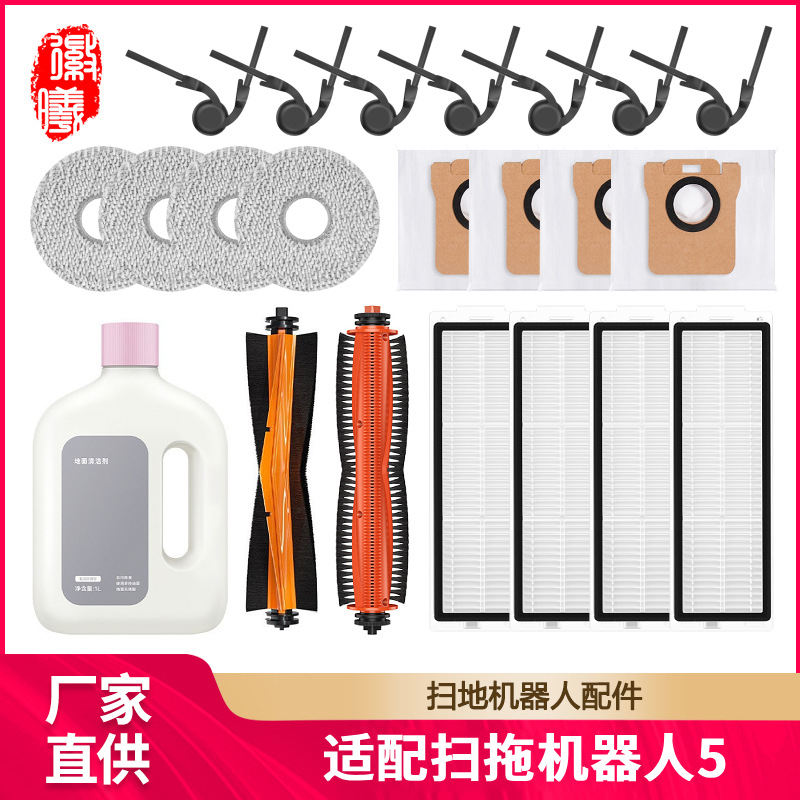适配小米扫地机器人5Pro配件集尘袋清洁液滚刷边刷滤网拖布耗材