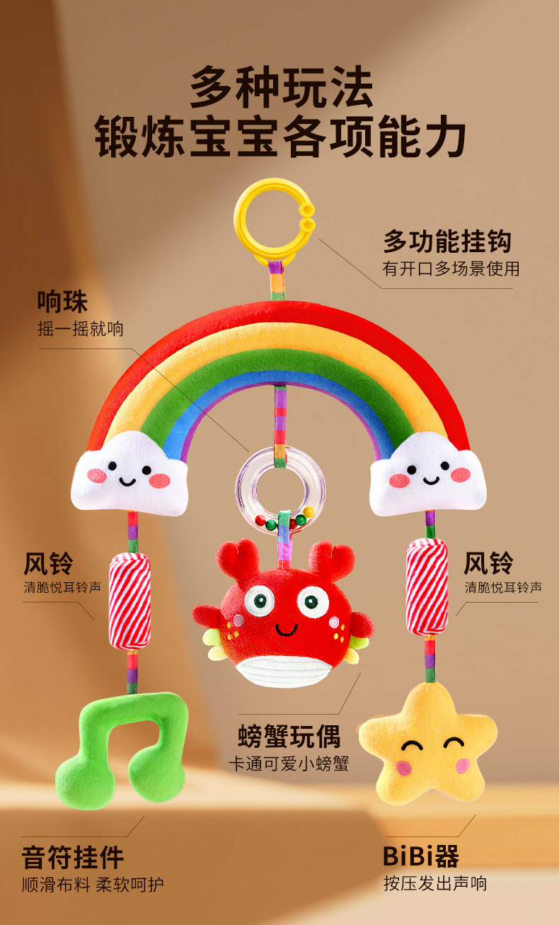 车载婴儿玩具座椅安抚彩虹床铃车上汽车吊挂风铃婴儿车挂件玩具