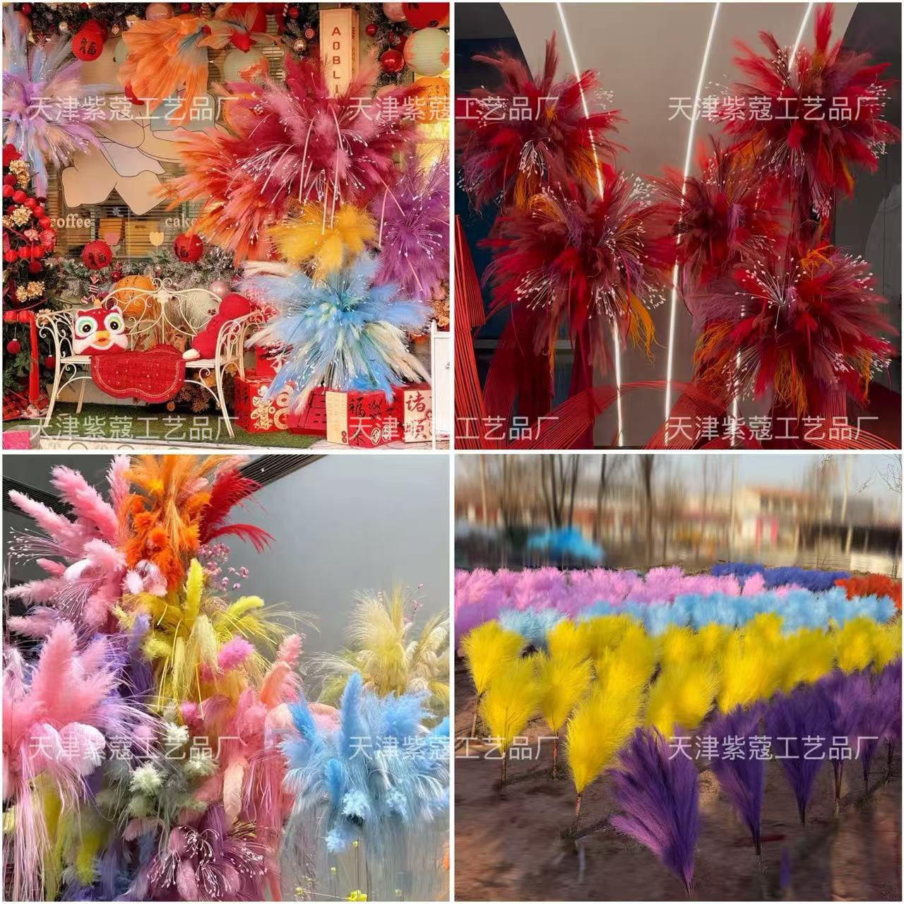 仿真花婚庆布置仿真烟花芦苇羽毛结婚装饰婚礼拍照道具仿真芦苇草
