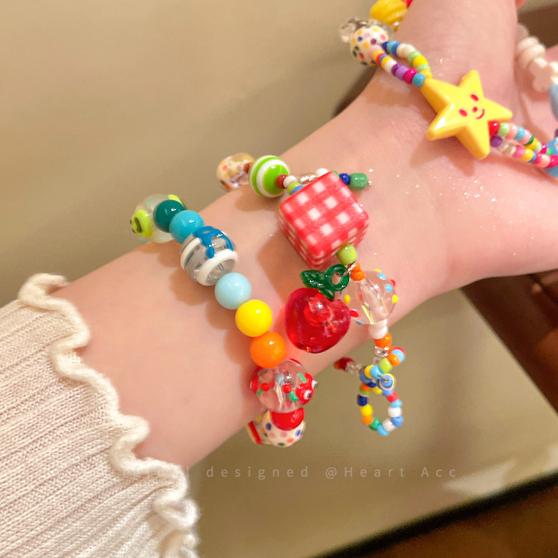 童趣可爱苹果星星串珠手链女夏日多巴胺叠戴手串学生党高颜值手饰