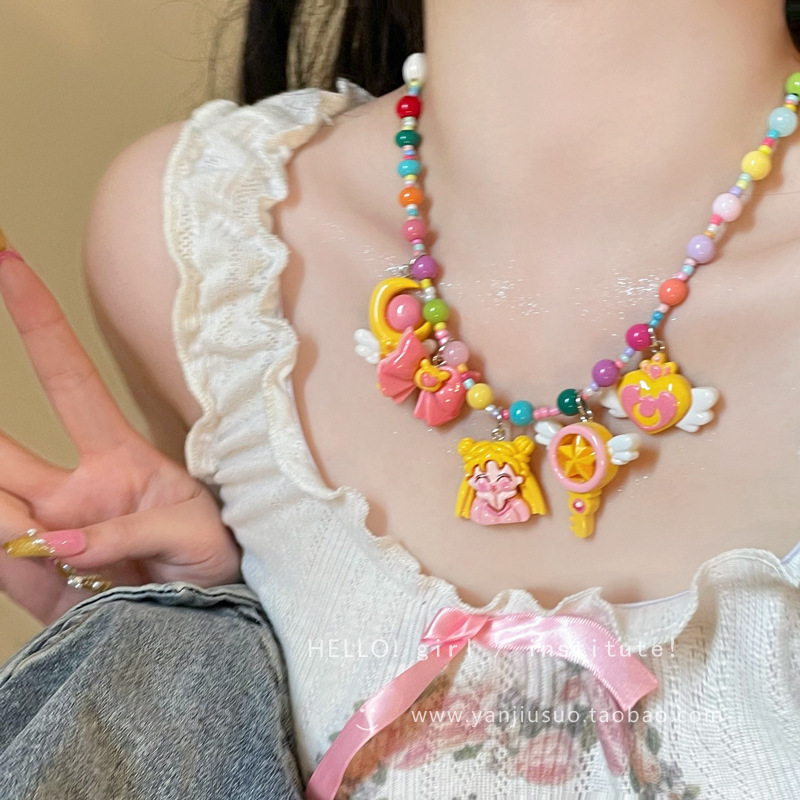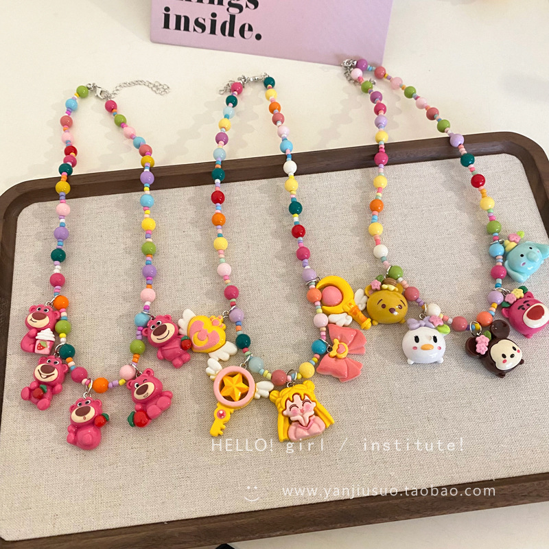 颜色 可爱彩色小动物卡通项链,可爱彩色草莓熊项链,美少女战士彩色串珠项链,可爱串珠小公主项链,可爱串珠头套娃娃项链