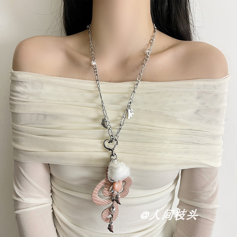 甘くてクールな女の子のリボンノートぬいぐるみネックレスレディースデザインロングセーターチェーン取り外し可能な多機能ペンダント