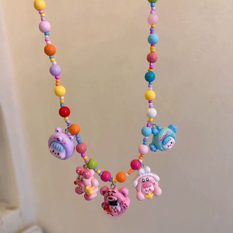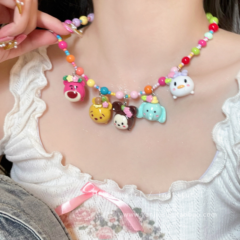 多巴胺彩色串珠草莓熊吊坠锁骨链女甜酷可爱米奇装饰项链脖子颈链