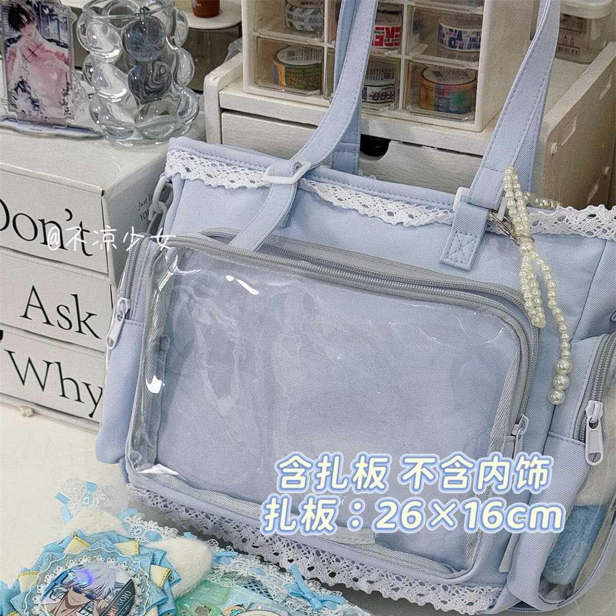 学院少女斜挎包大容量透明单肩包谷子吧唧扎板大食量蕾丝痛包娃包