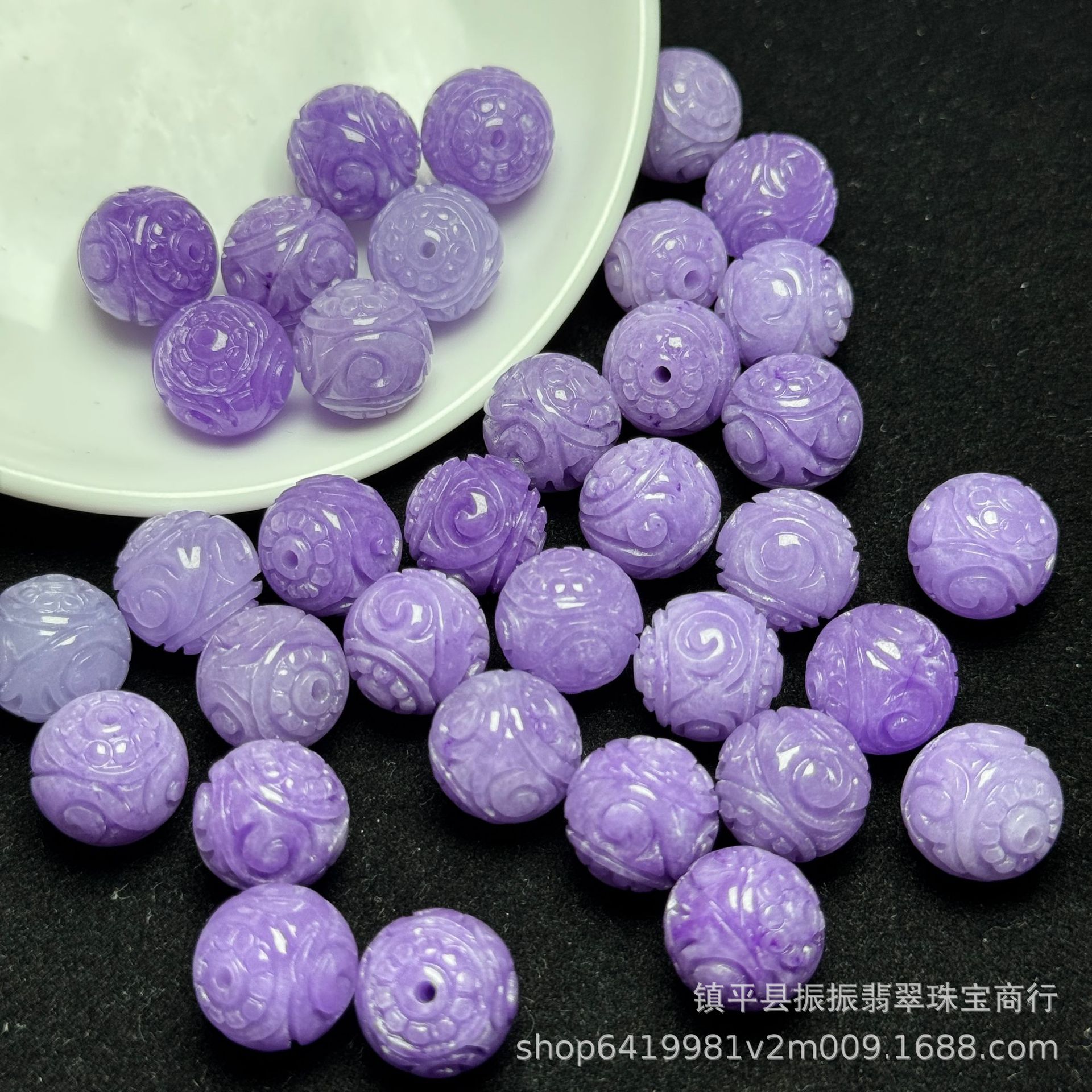 翡翠紫翡精工13mm龙珠散珠批发 DIY手串项链玉石饰品耳坠流苏批发