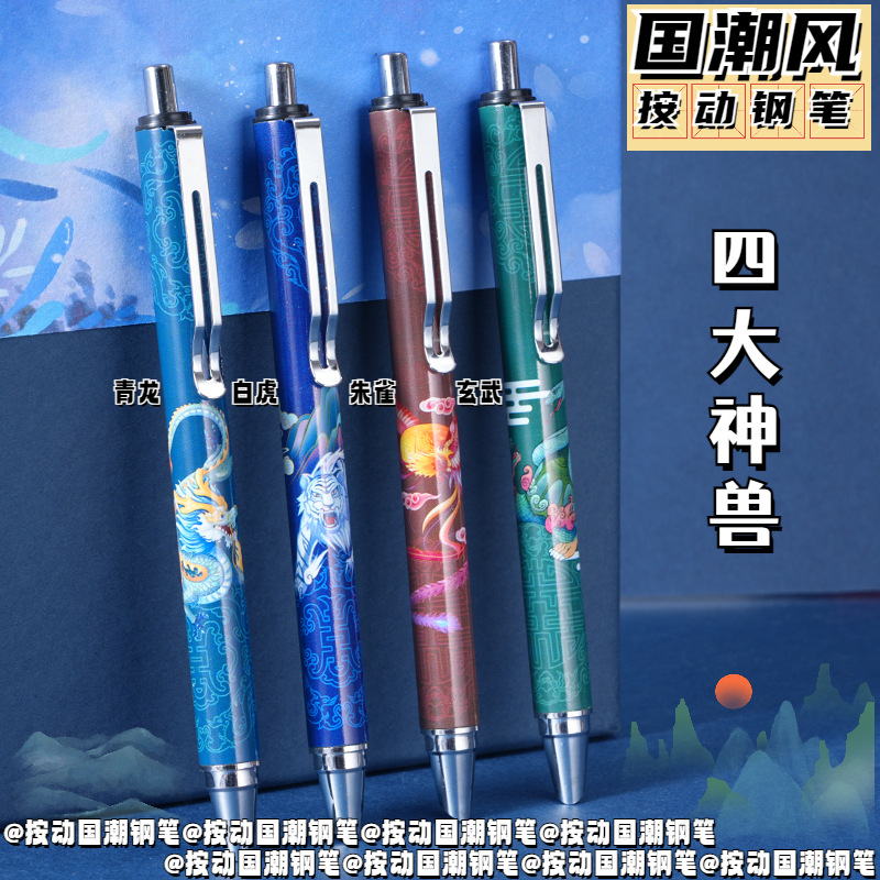 国潮風四神獣押し式万年筆押圧式手押しでインクパックを交換できます。