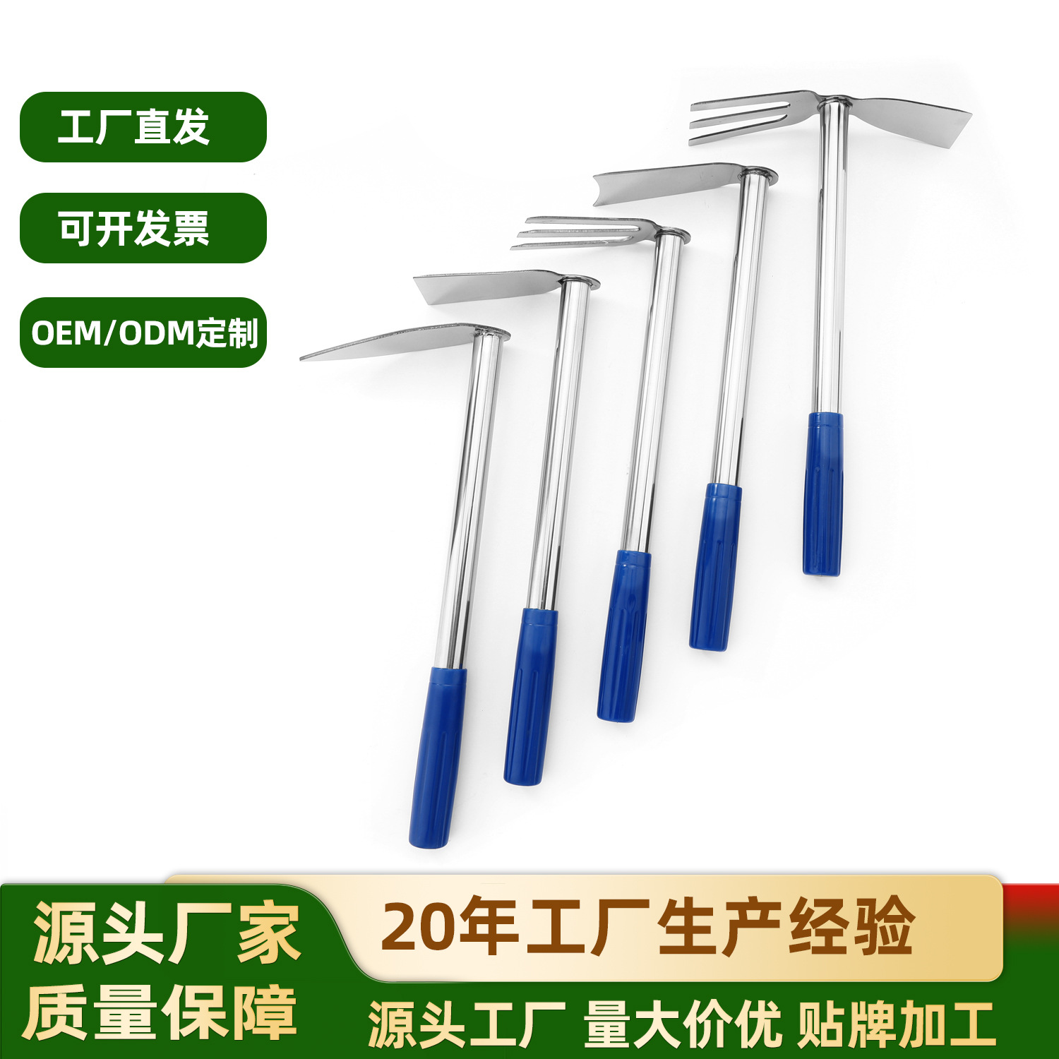 ステンレスの小さいくわは花を植えて野菜を植えて地面をひっくり返して釣りをします。